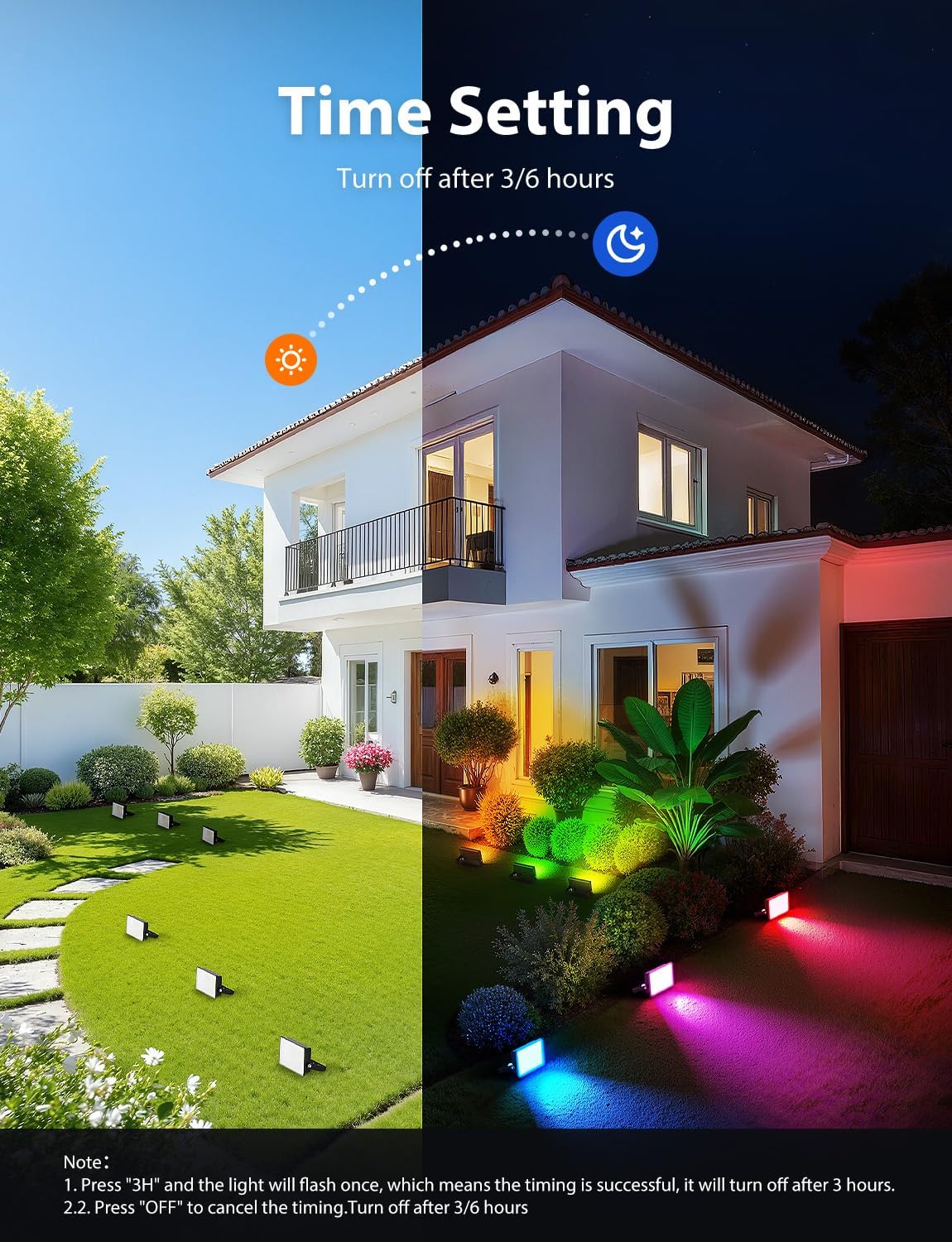Effortless Multi-Light Setup (Daisy Chain): Connect up to 6 floodlights with a single power cord! Features 10ft cables between lights for flexible placement. True plug-and-play simplicity for instant indoor/outdoor illumination(With 6 Ground Stakes) – perfect for uplighting, walls, stages, and landscapes.