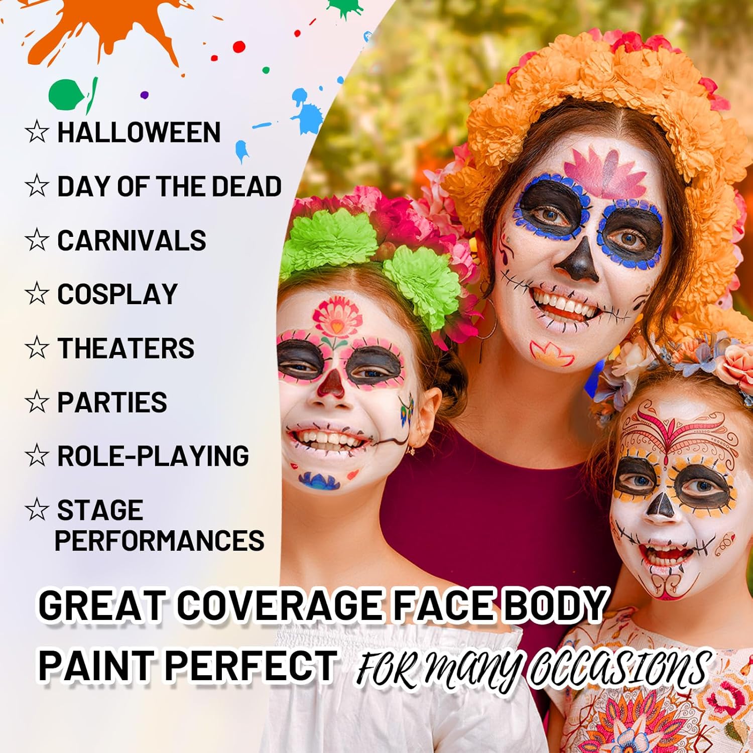 [Perfect for Many Occasions] This facial and body painting can be used in various occasions. It can be applied to Halloween, Day of the Dead, carnivals, festivals, stage performances, theaters, parties, role-playing, birthdays, school activities, Cosplay, sports events, and so on