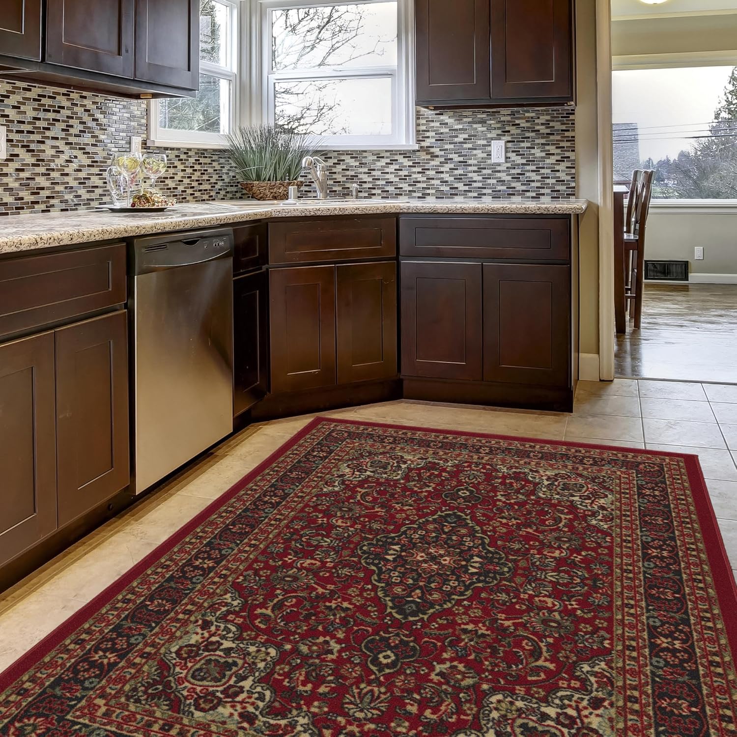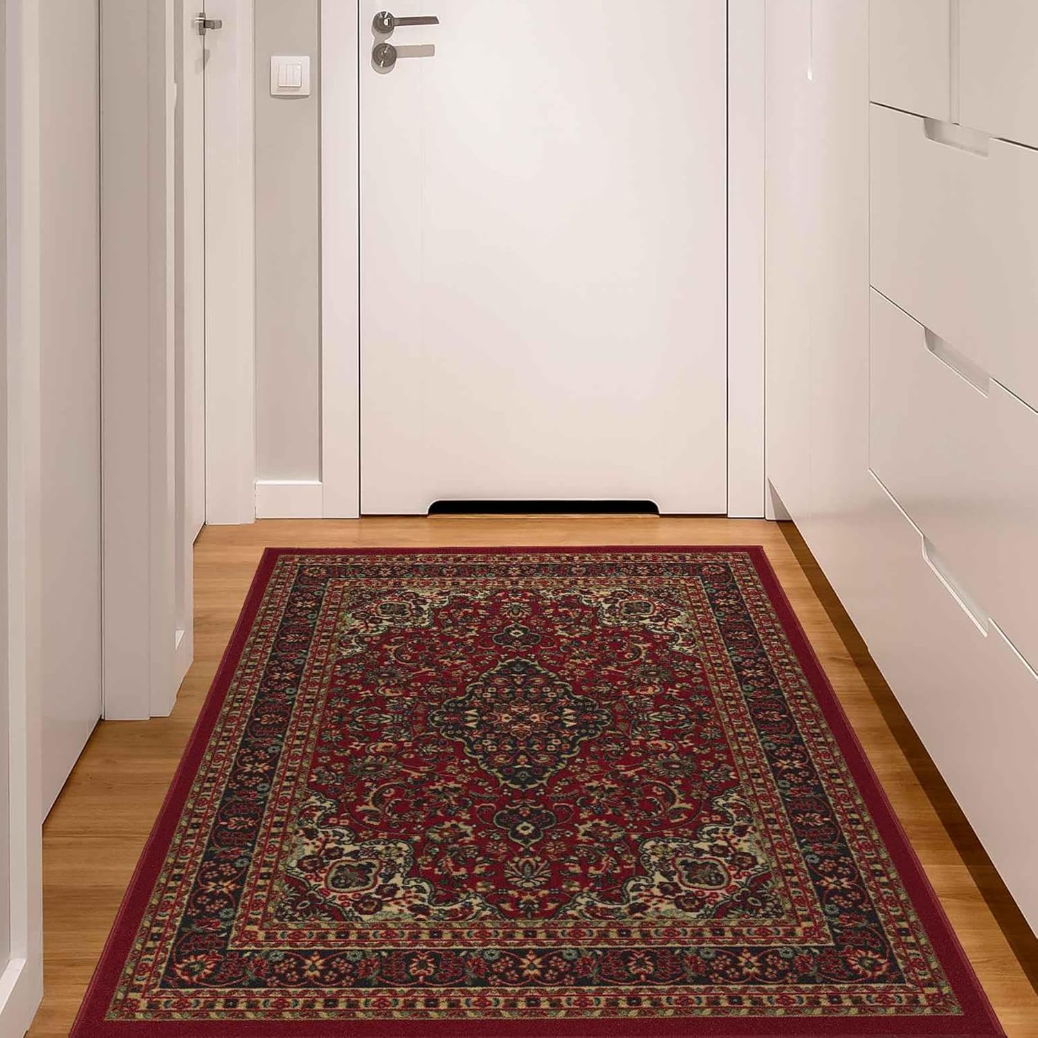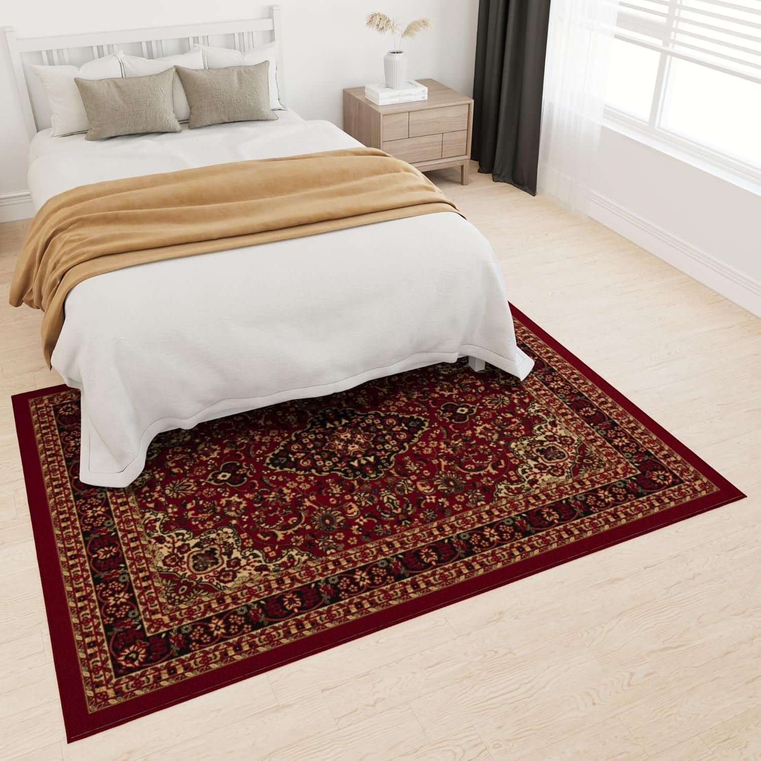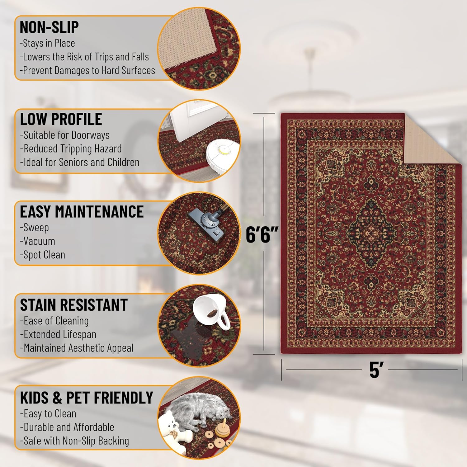 [KEY ATTRIBUTES]: Size: 5′ x 6’6″ (5′ x 7′) | Thickness: 0.2 in. | Color: Red.Construction type:Machine Made