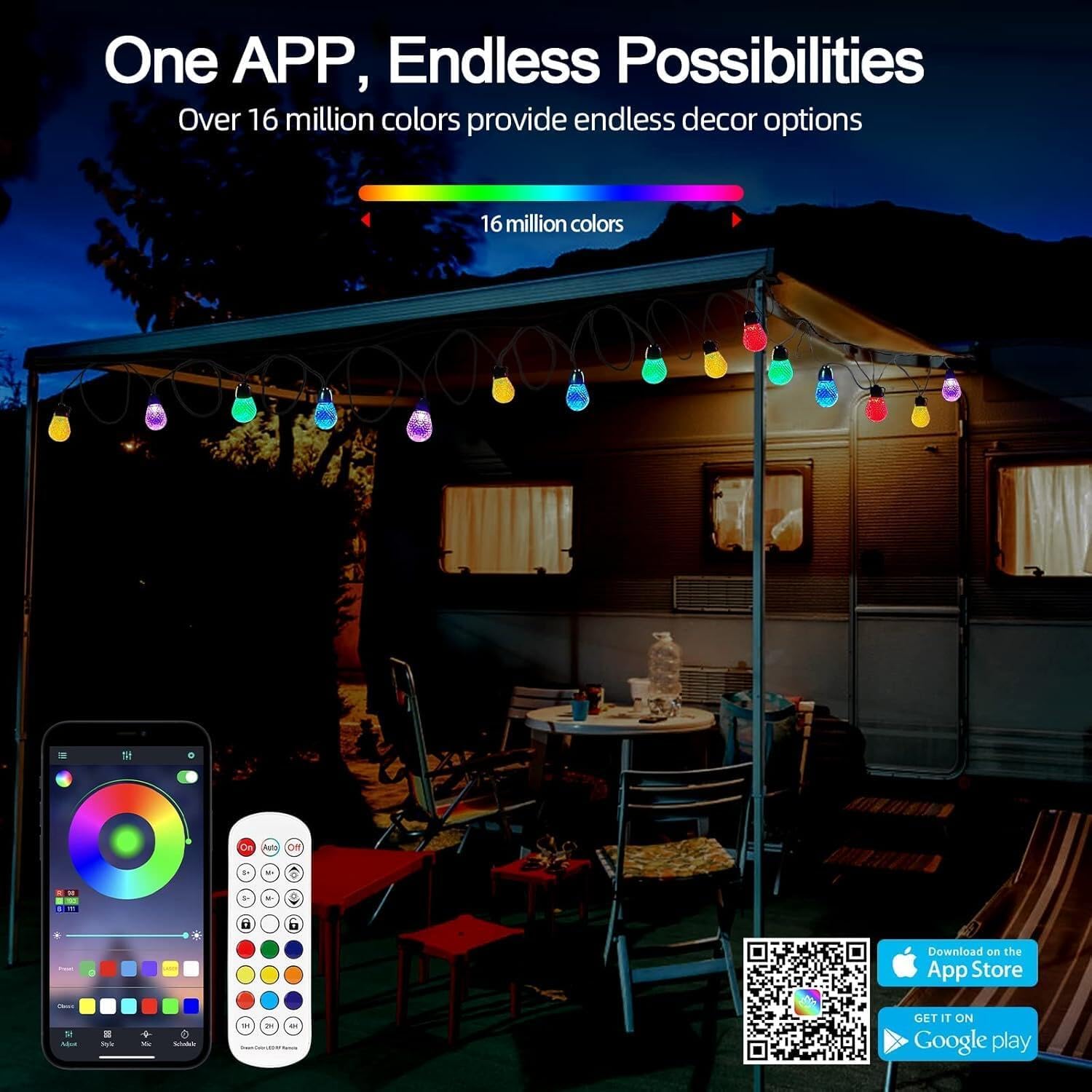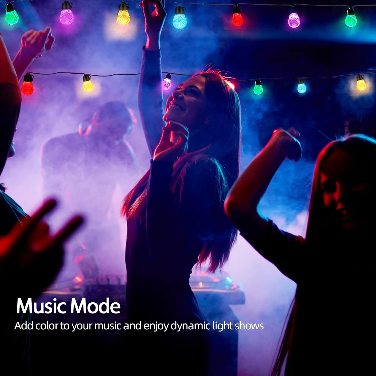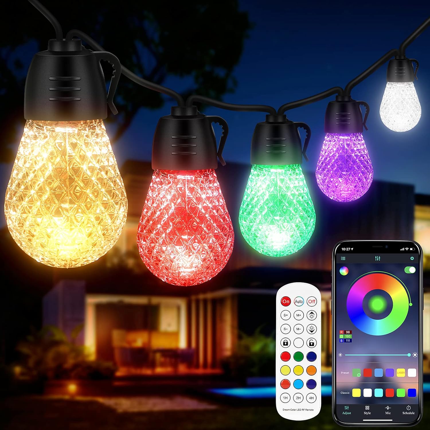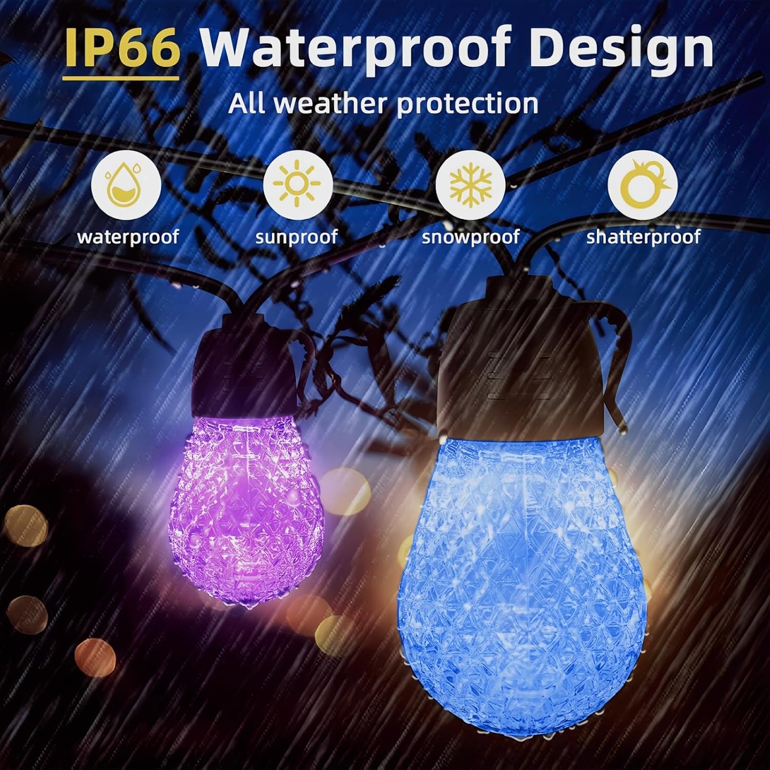 🔋【Unique Bulb Design and Millions of Colors】 :Each bulb is composed of 57 diamond-shaped surfaces. This subversive design allows the bulb to reflect ambient lights, with more than 1600w color options and multiple preset modes, these Outside string lights absolute will add beauty to any outdoor venue.