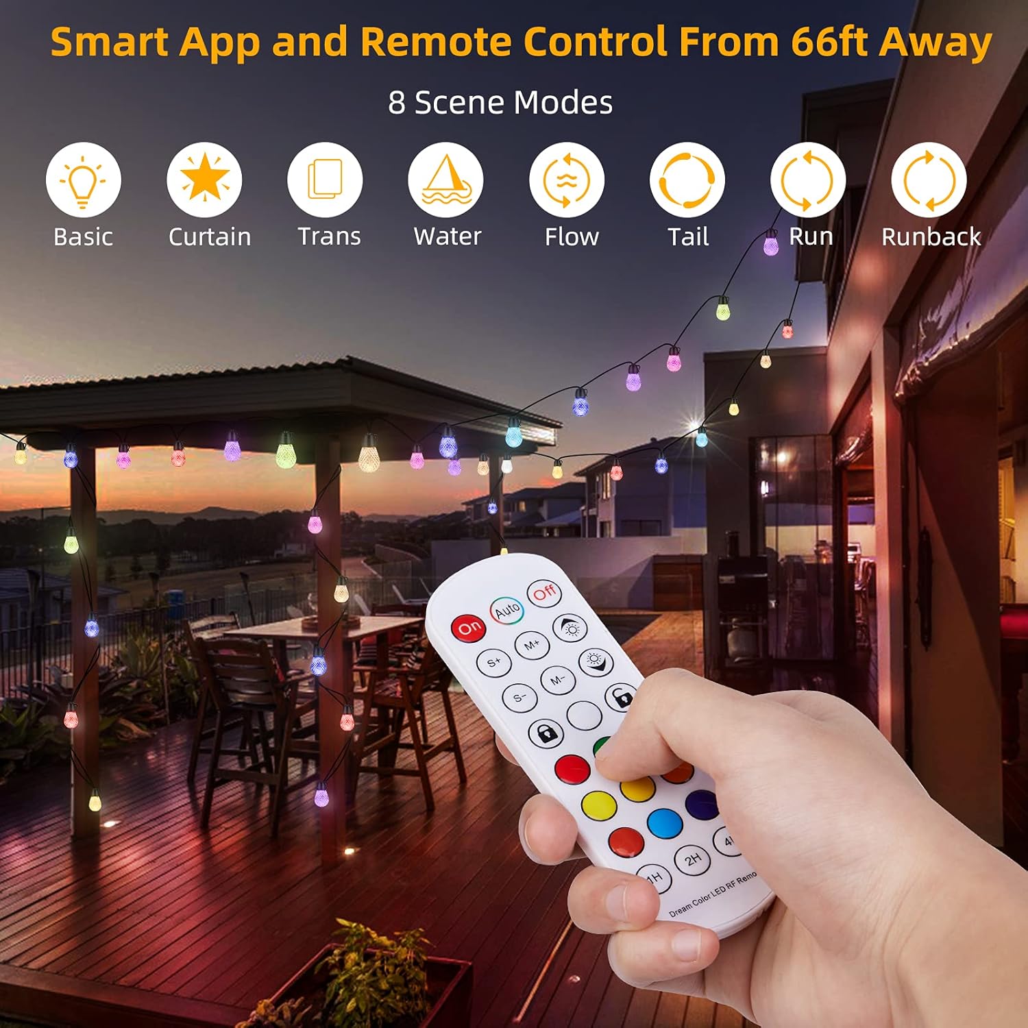 🔋【Multiple Control Methods Smart String Lights】: String lights for outside can be controlled by the Magic Lantern APP and the remote control. The remote control can be 360-degree non-directional and can control the light string in any direction, it is effective within a distance of 10-15m. The infrared remote control command allows you to turn on the light string outdoors without manual operation, suitable for a variety of scenarios.
