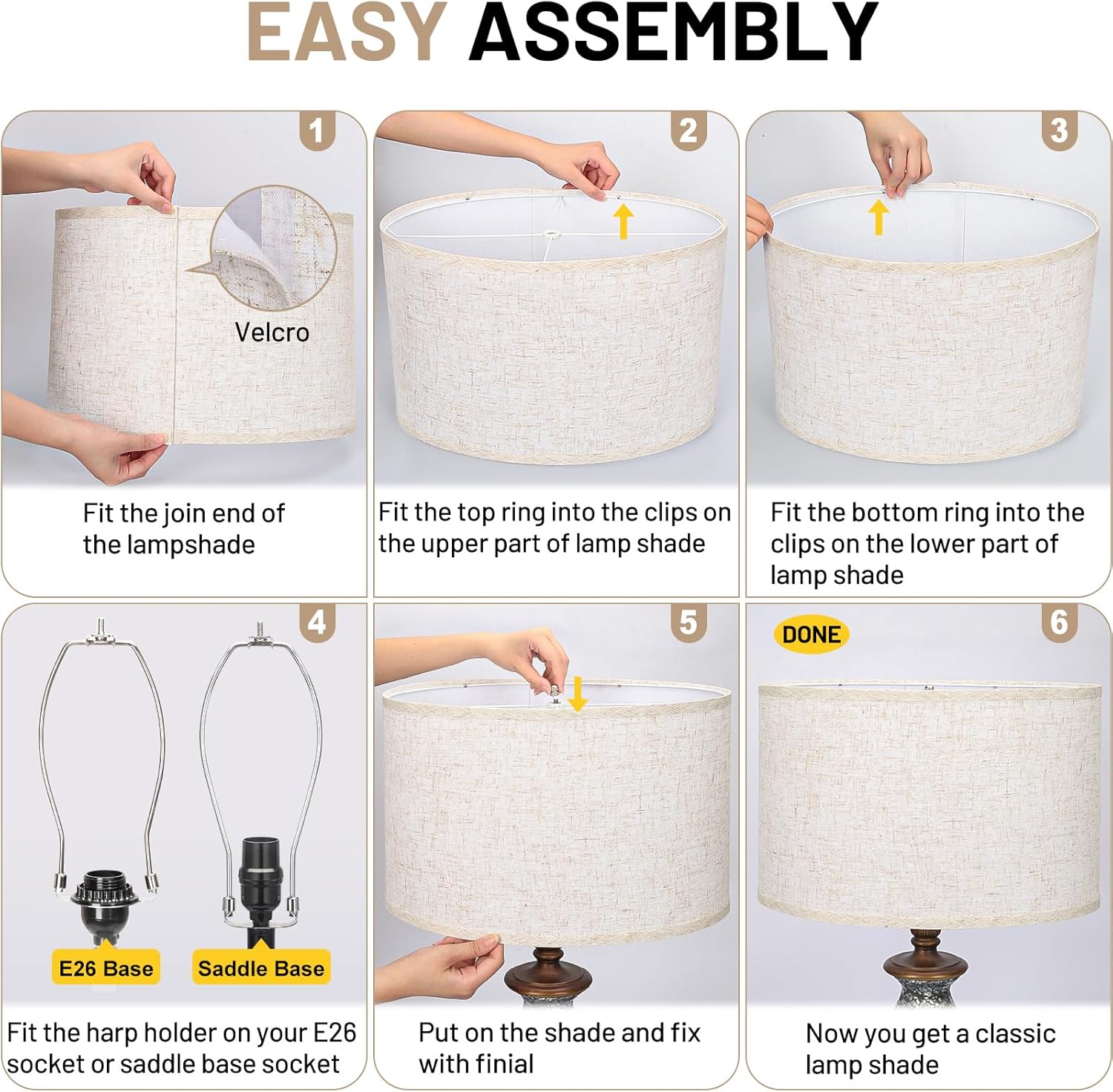 Easy Installation: Adopting a folded and detachable design, it helps keep the lamp shades for floor lamps in good condition. Self-Assembly is a breeze. All you need to do is fix the linen lamp shade around the metal rings by fitting it into the clips and fasten the velcro together. Tool-Free Setup in Minutes