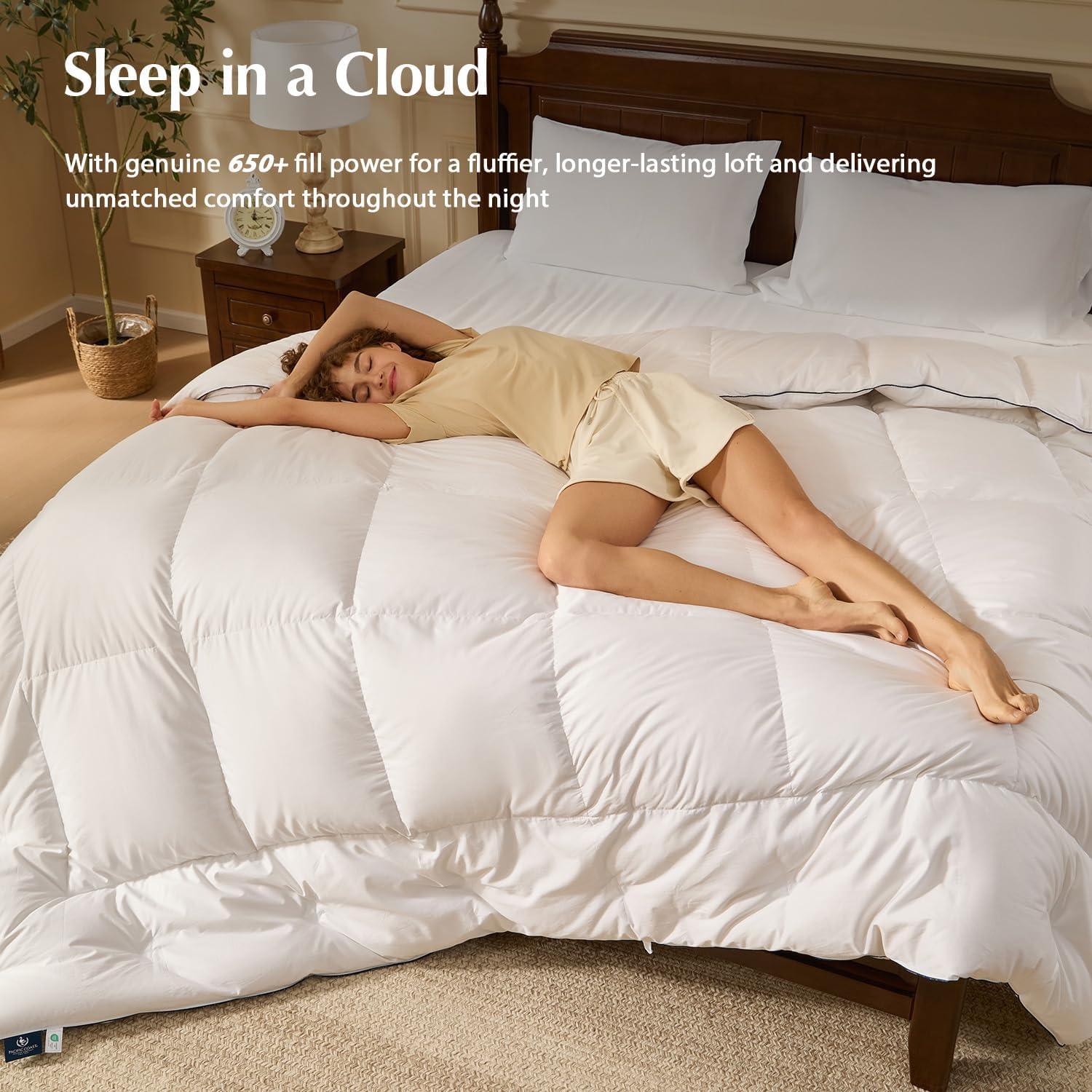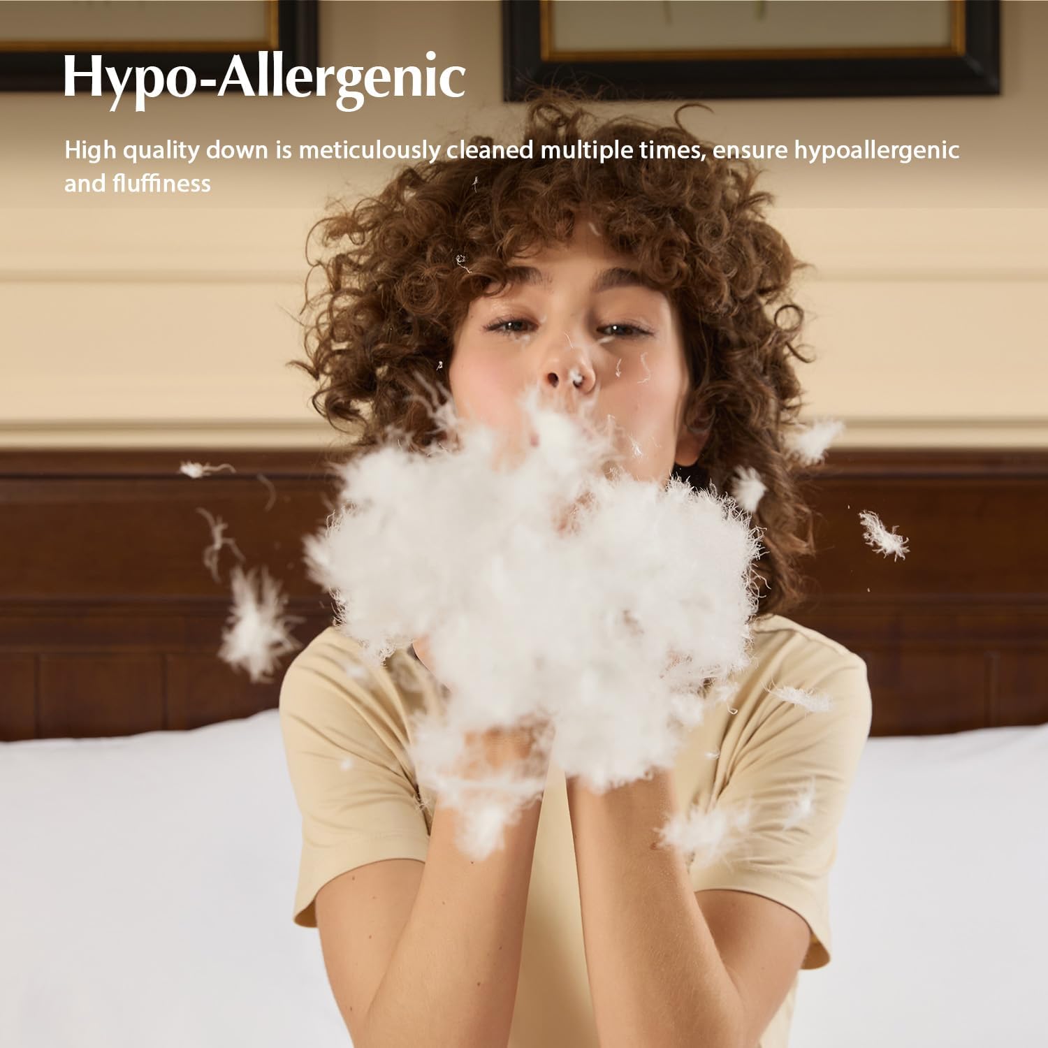 ALL-SEASON USE – One Down Comforter, Four Seasons of Perfect Sleeps! This down comforter is perfect for year-round use. We’ve turned fill amount into a science, precisely determining the optimal fill needed for an all-season comforter. Enhance your sleep experience with this down comforter. Designed for all-season warmth, the comforter provides the perfect balance of coziness in winter and breathability in summer, one comforter, endless climates.