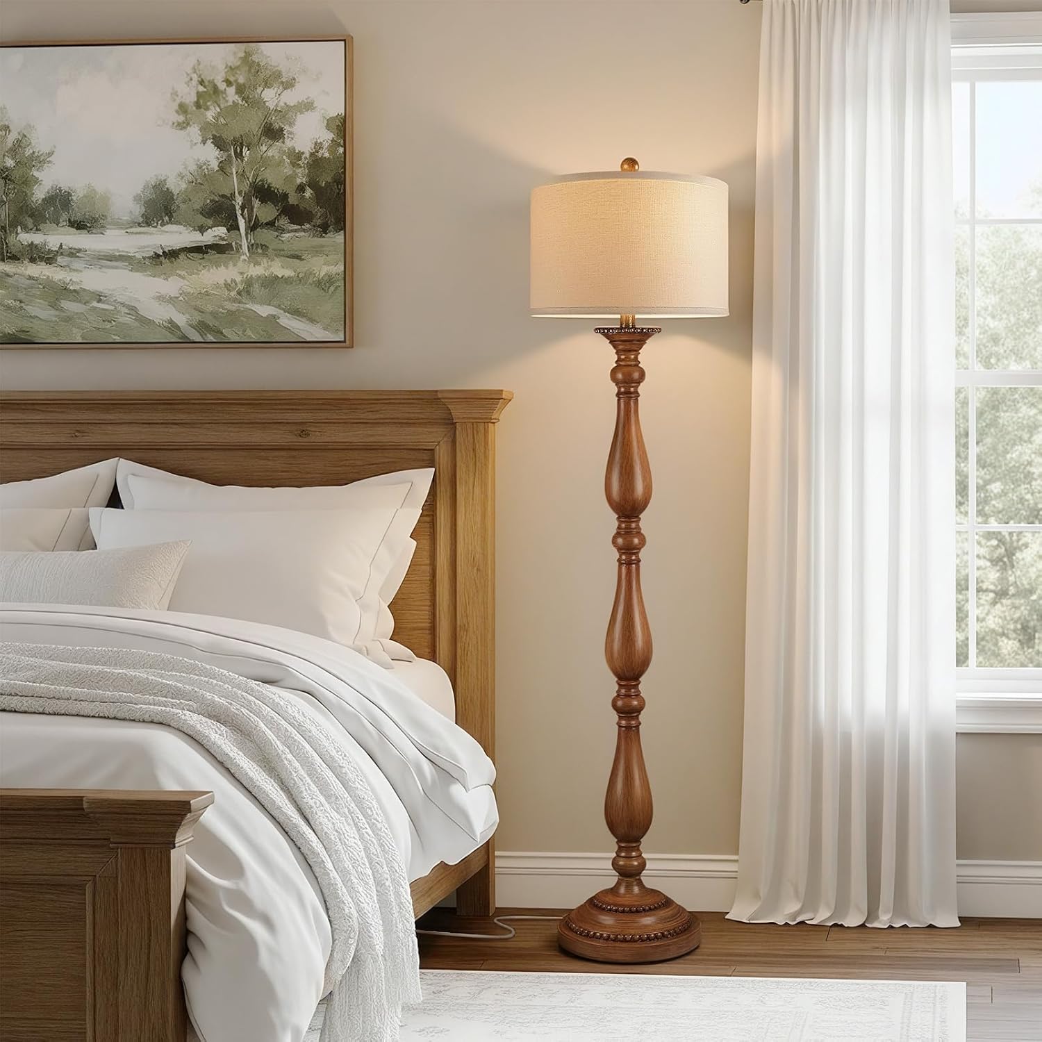 Vintage Farmhouse Style: With its classic vintage look and farmhouse style, this floor lamp can easily be placed next to a sofa, armchair or bed. Its elegant height and resin finish will enhance the style of any space. It is an ideal choice for home decoration and creates a warm and welcoming atmosphere