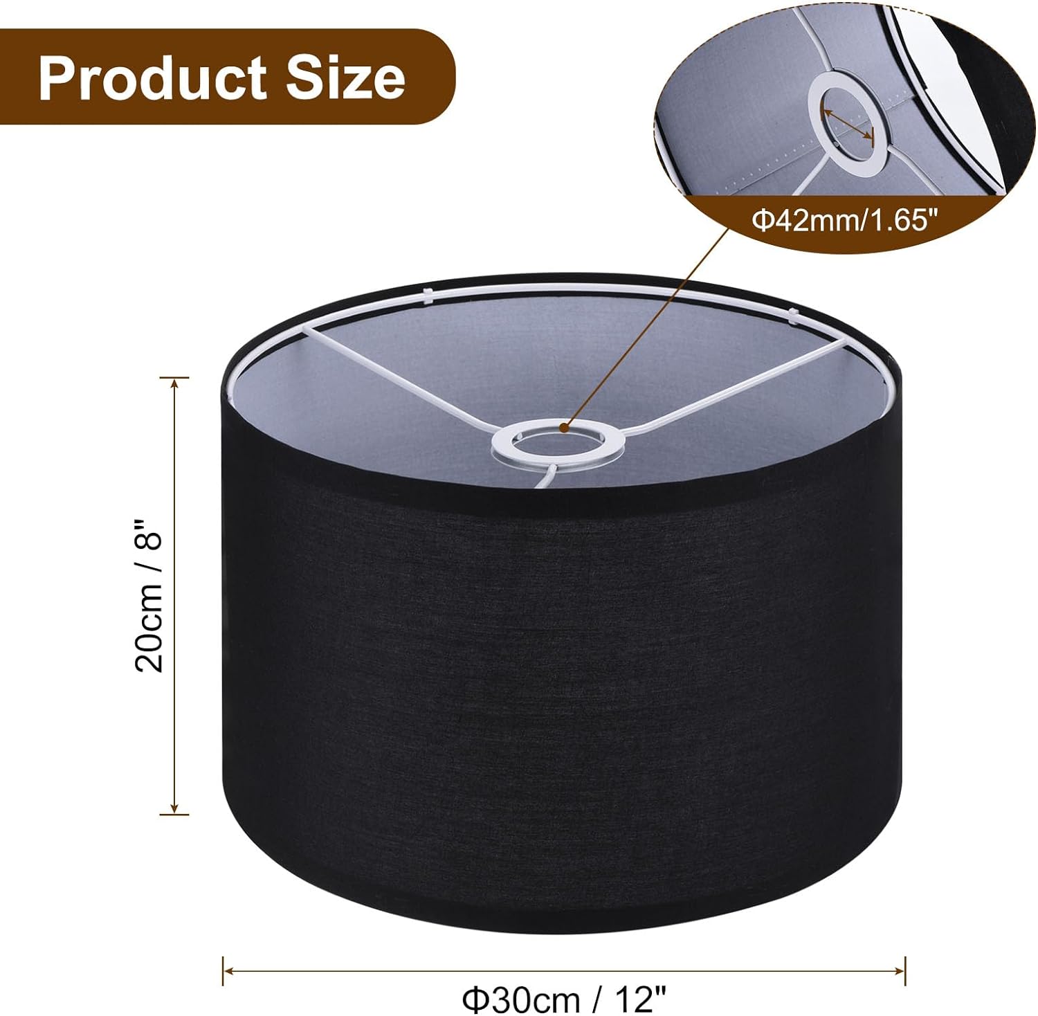 LAMPSHADE SIZE – Our table lamp shade 12-inch (30cm) diameter top, 12-inch (30cm) bottom diameter, 8-inch (20cm) high; 1.65 inch (42mm) ring diameter. Medium size fits most table lamps, pendant lights, and floor lamps. (NOTE: The diameter of the mounting hole is 42mm, NOT suitable for standard harps)