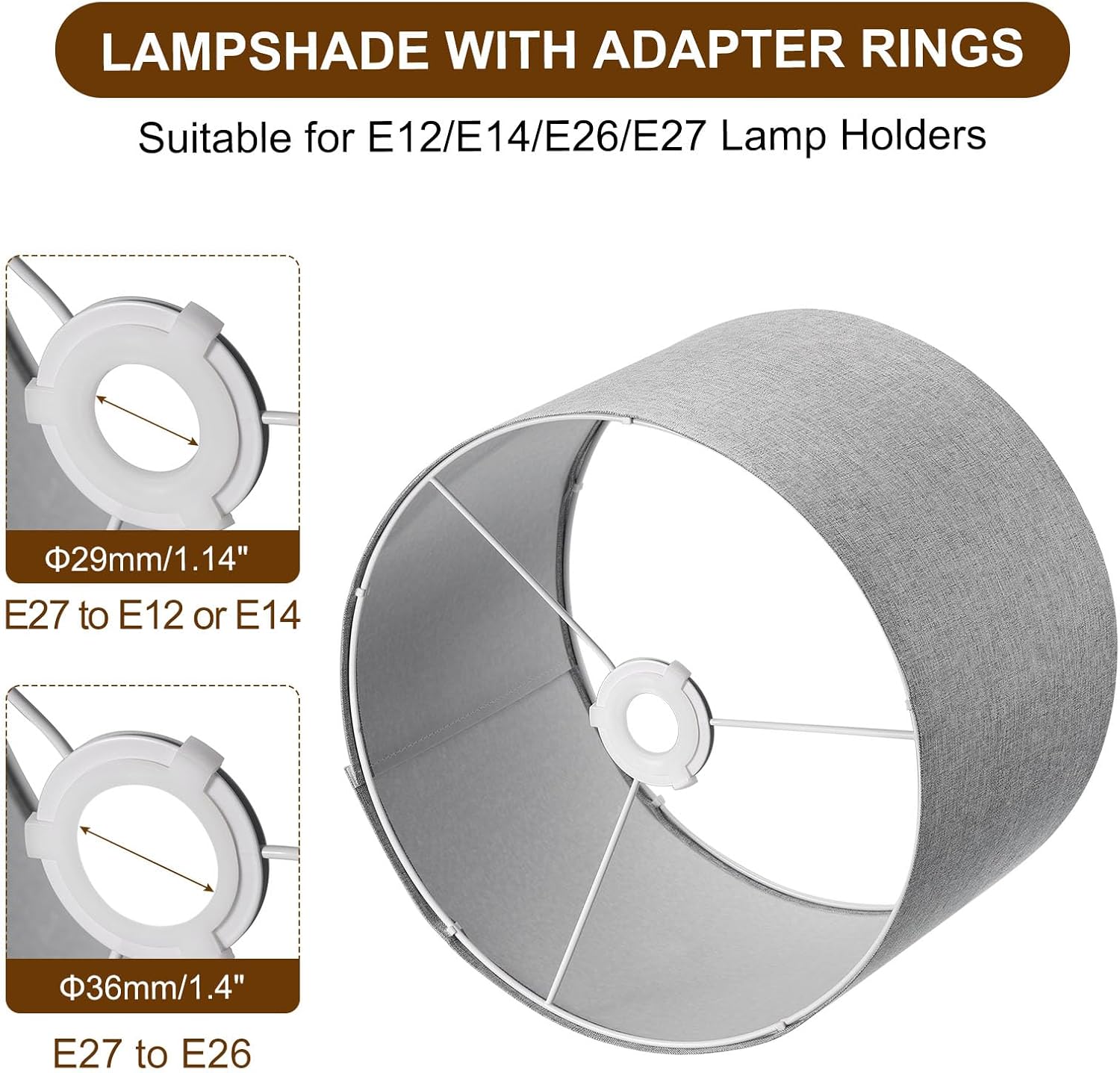 FIT FOR E26/E27/E14 LAMP HOLDER – The fabric lampshade is suitable for E27 lamp sockets (The diameter of the lamp socket ring is 1.65 inch). We also provide E27 to E26 and E27 to E14 lamp adapters to meet your needs for different lamp specifications. (NOTE: Please check the ring diameter of the light frame carefully before ordering.)