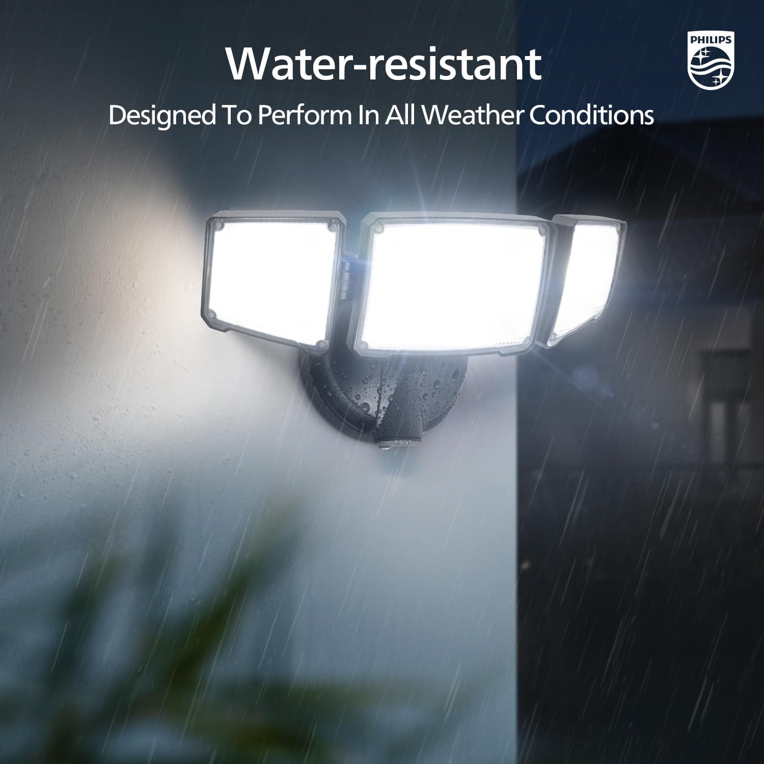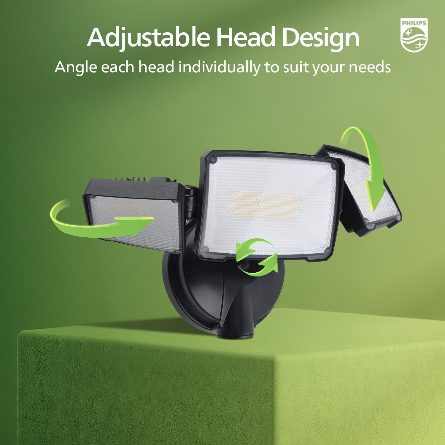 HIGH BRIGHTNESS AND WIDE COVERAGE AREA – Produces 7400 lm of cool white light at 5000 K; three rotatable heads provide a wide and customizable coverage area.