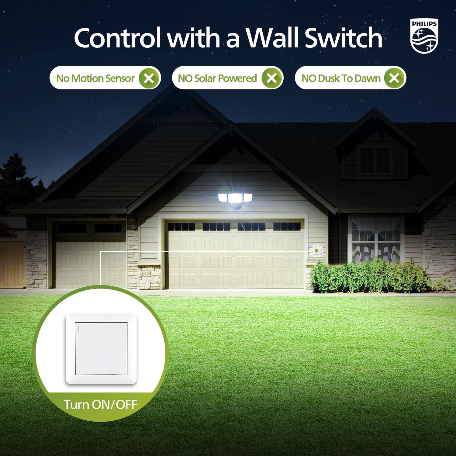 CONTROL WITH A WALL SWITCH – Hardwired floodlight designed for full manual control; turn on and off with a wall switch only.