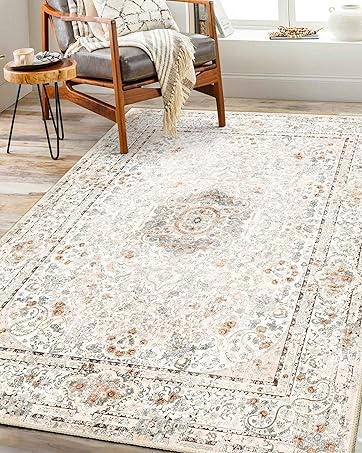Castage Boho Rug,Washable Area Rugs for Bedroom Living Room Kitchen Entryway,Small Vintage Distressed Non Slip Carpet,Beige
