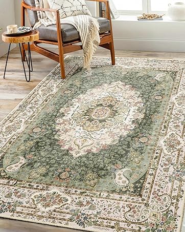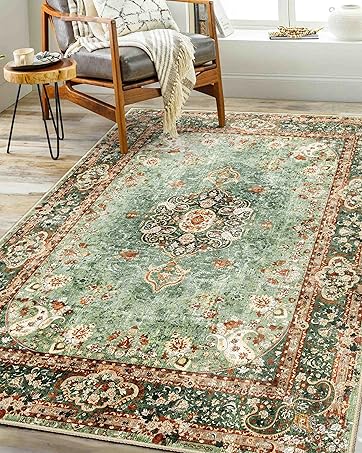 Castage Green Rug,Washable Area Rugs for Bedroom Living Room Kitchen Entryway,Small Boho Vintage Distressed Oriental Non Slip Carpet