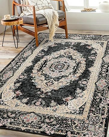 Castage Boho Rug,Washable Area Rugs for Bedroom Living Room Kitchen Entryway,Small Vintage Distressed Non Slip Carpet,Black