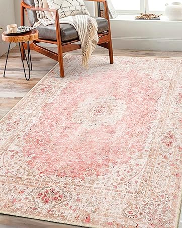 Castage Pink Rug,Washable Area Rugs for Bedroom Living Room Kitchen Entryway,Small Boho Vintage Distressed Non Slip Carpet,Blush