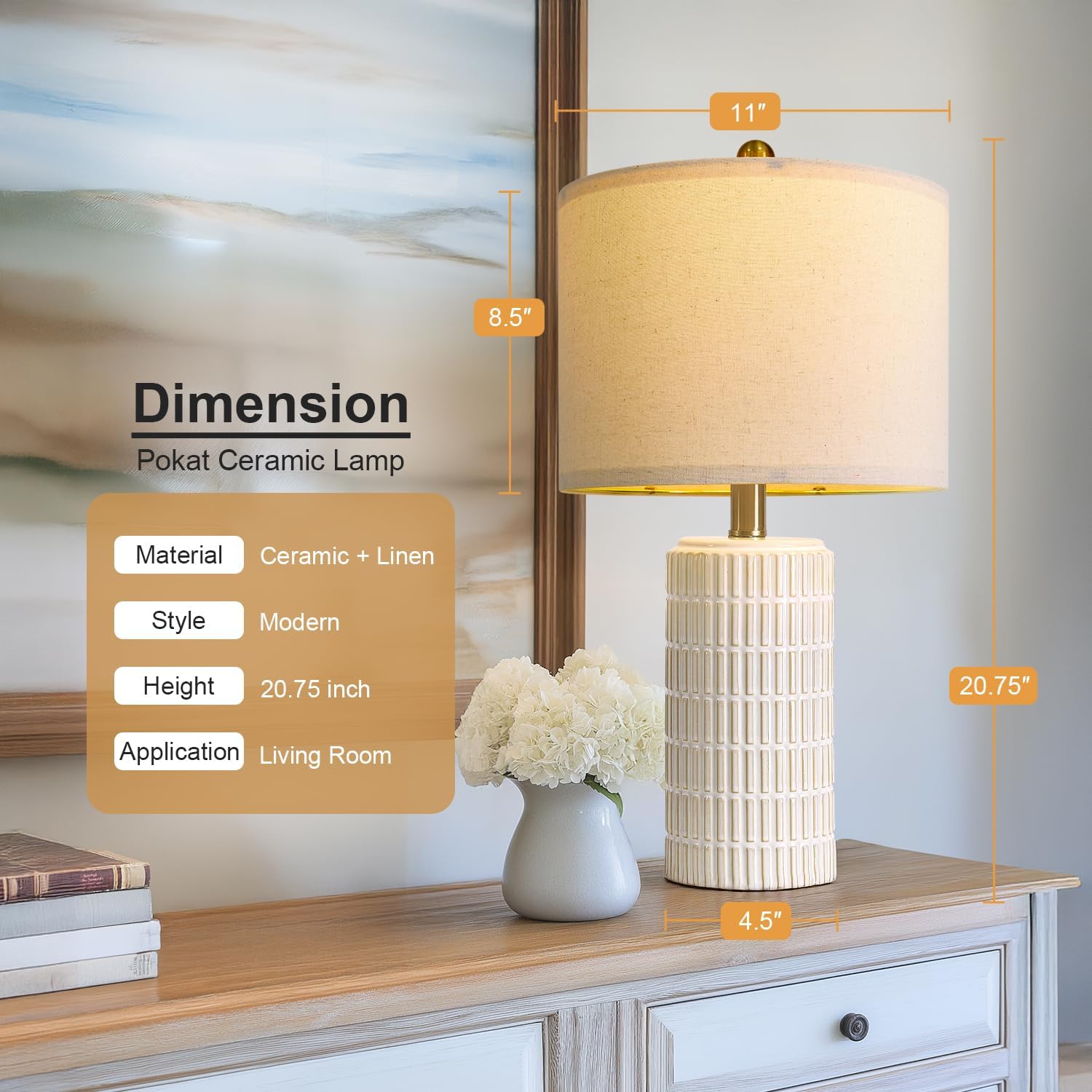 Ideal Decor and Gift: Elevate your house decor with Pokat ceramic lamps set of 2, which also serves as a perfect decorative piece. This farmhouse lamps’ modern design add warmth to any space. Whether placed on nightstands, bedside in bedrooms or on end tables, console tables, hallway in the living rooms and dorm, this modern lamps for living room enhances the overall aesthetic. This living room table lamps make an ideal gift for mom, daughter, mother’s Day, Valentine’s Day, Housewarming, Birthday, Anniversary, Wedding to her, friends, wife, women, kids, mom, girls, college, mother, grandmother.,