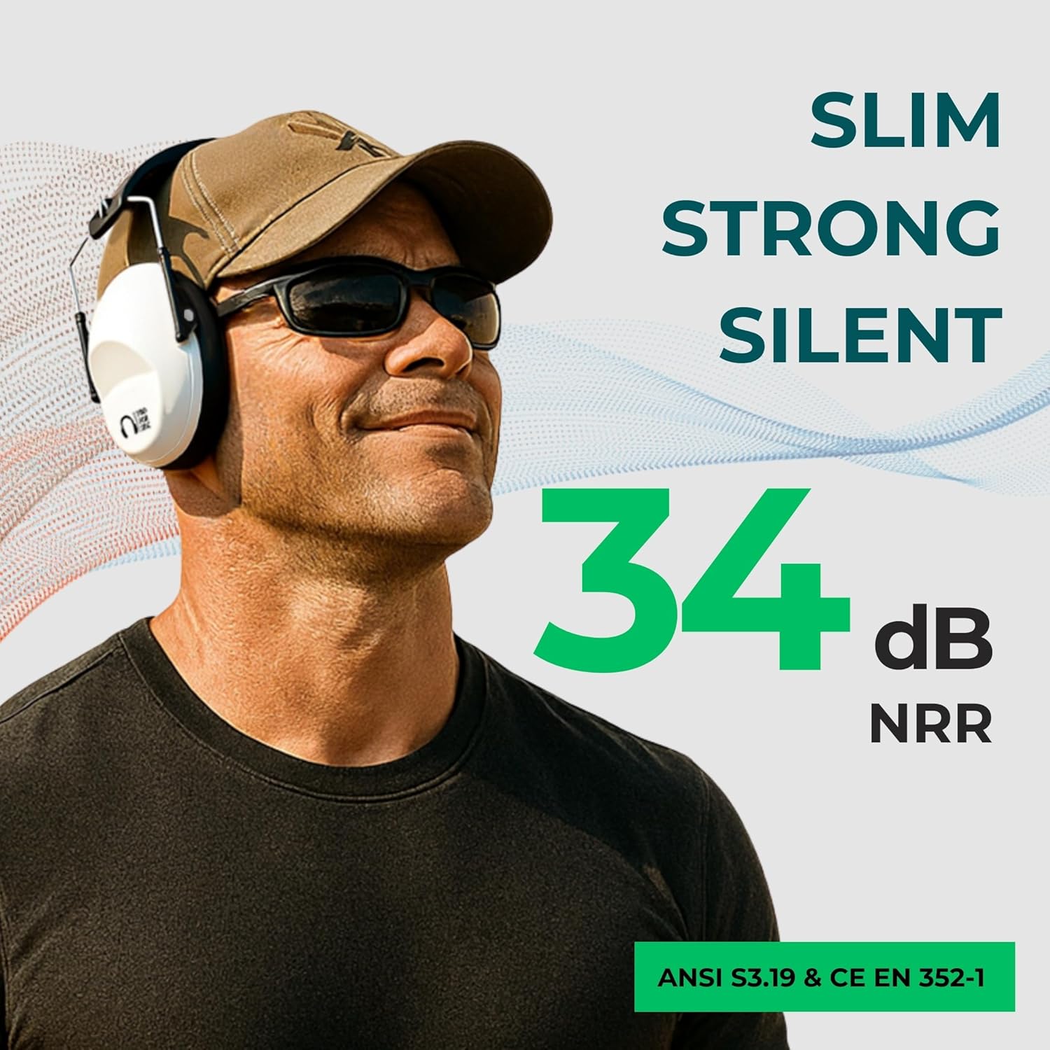 CERTIFIED, TRUSTED PROTECTION: ANSI S3.19 & CE EN 352-1 certified with a 34 dB NRR (OSHA-adjusted to 31 dB per safety guidelines). Engineered to cut harmful high-frequency sounds—like gunshots, power tools, or engines — while staying slim, compact, and foldable. As passive noise reduction earmuffs, they reduce rather than cancelling noise, so low-frequency sound (e.g., conversation, bass) is less affected. For maximum ear protection in extreme noise, double up with earplugs under the earmuffs.
