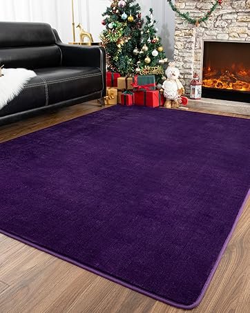 Dark Purple Bedroom Living Room Carpet, Memory Foam Area Rug for Kids Room Dorm Nursery Play Mat Indoor Home Decor