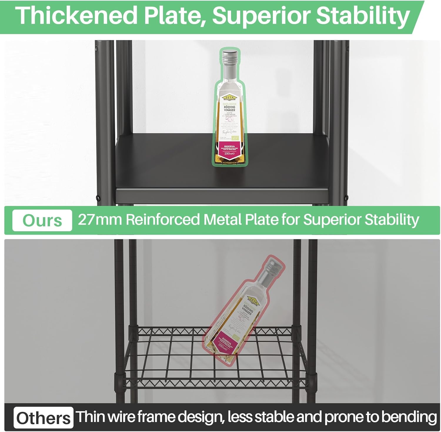 Multipurpose 5 tier metal shelf rack provides 5 layers of storage space in small areas like kitchen, bathroom, garage, bedroom