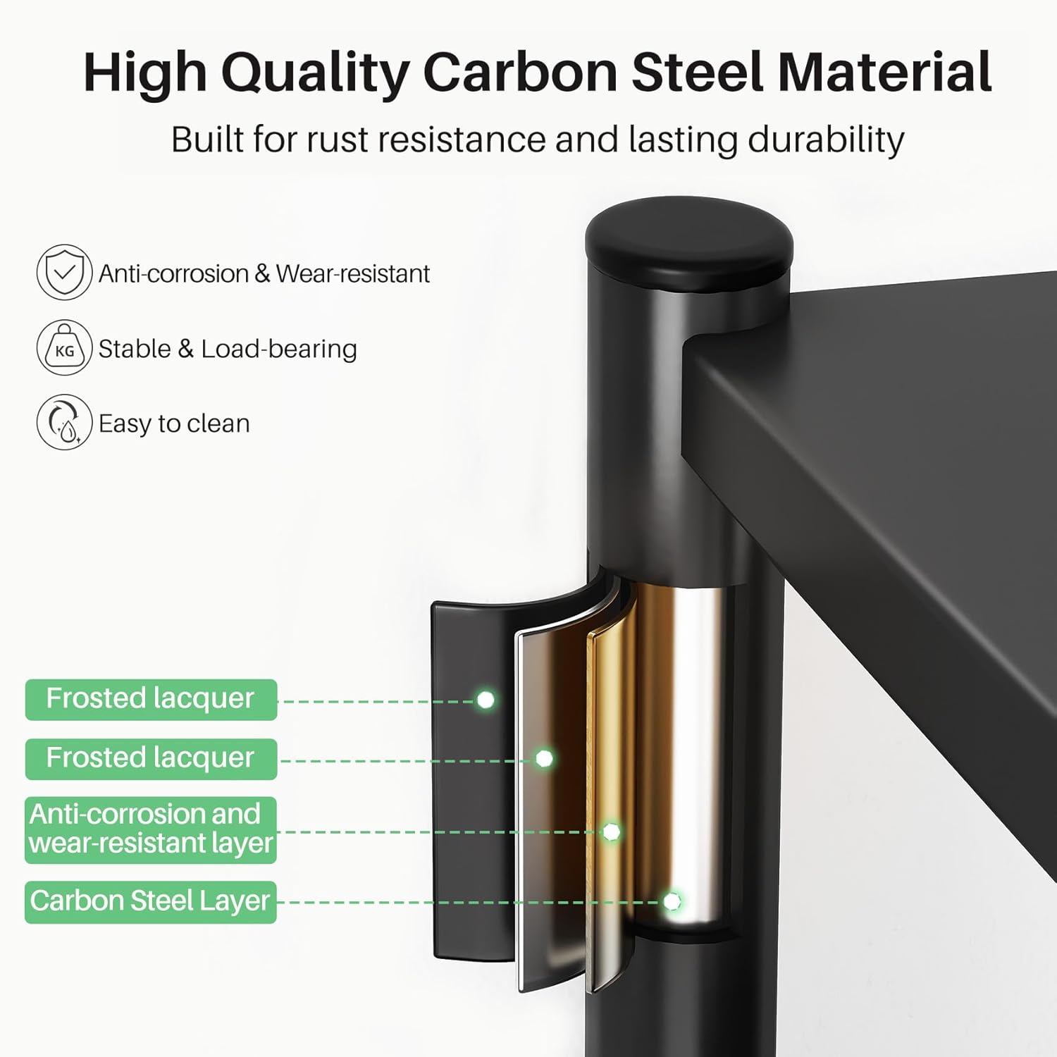 Sturdy and durable construction made from high grade carbon steel with 450 lbs max load capacity per shelf
