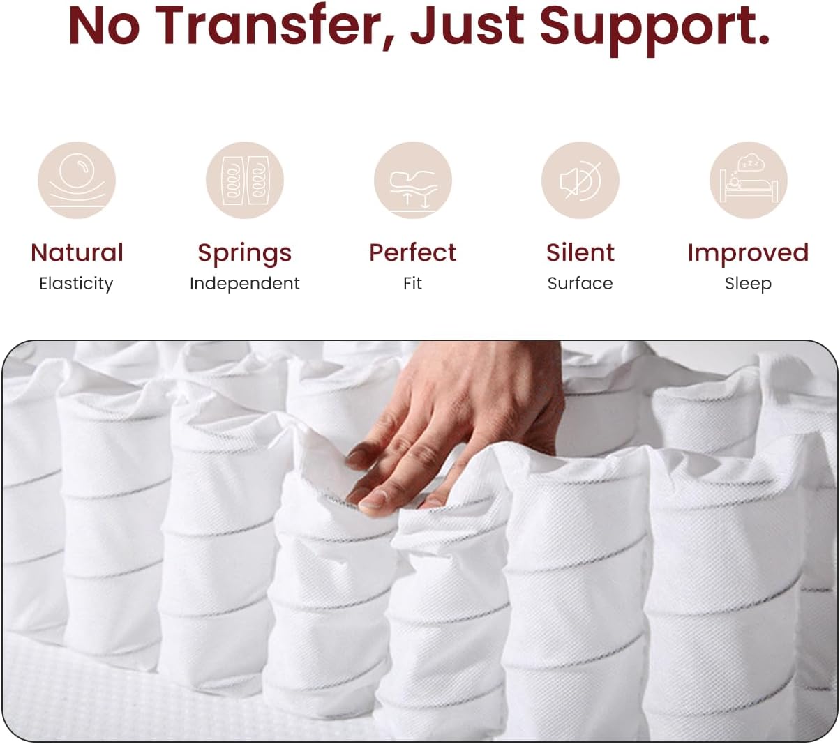 Sleep Cool and Breathability: a cool to the touch knit cover, with independent pocket spring system enhances air circulation, preventing trapped heat, creates a breathable microclimate that wicks warmth away with each movement