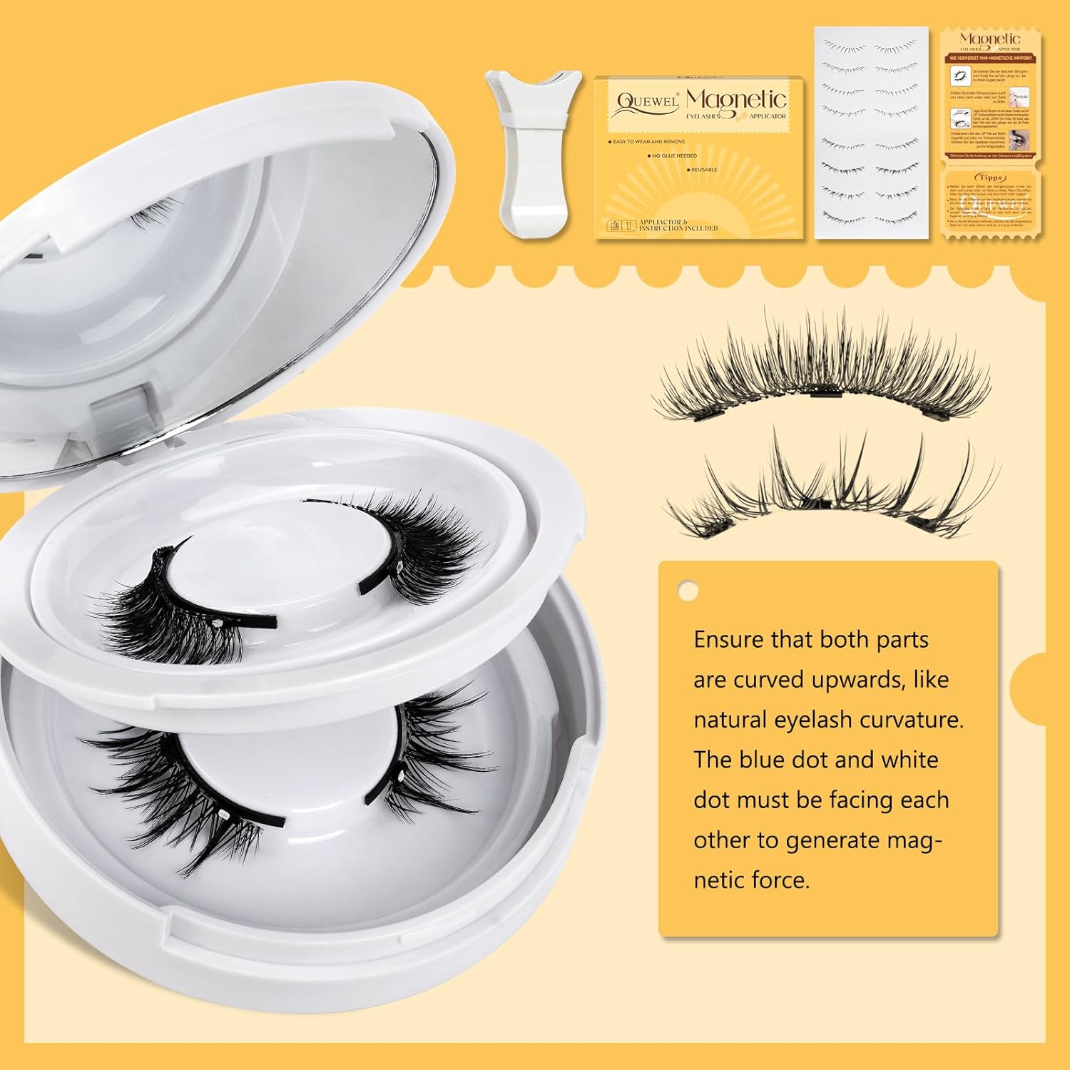 Magnetic Eyelashes Kit: The magnetic lashes kit includes 2 pair of magnetic eyelashes, 1 magnetic applicator, 1 small magnetic box with a mirror, and one instruction sheet. Magnetic lashes are easy to operate and only take 3 minute to complete, effectively saving your makeup time and allowing you to stay on through an entire sweaty rave!