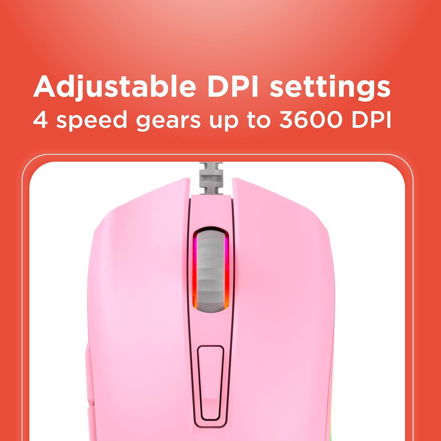 Adjustable DPI Settings: Switch between 4 speed gears up to 3600 DPI with a single click, allowing for precise control.