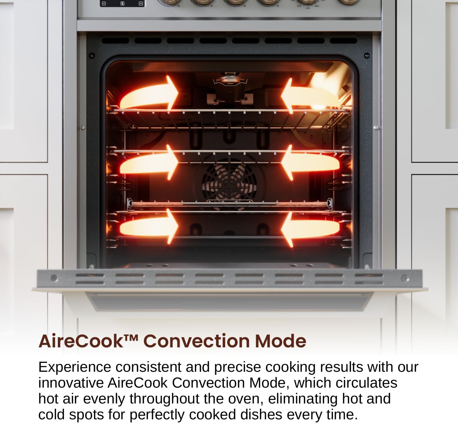 AIRECOOK CONVECTION MODE: Our AireCook Convection modes use a fan to circulate hot air evenly throughout the oven to eliminate hot and cold spots, providing consistent and precise cooking results.