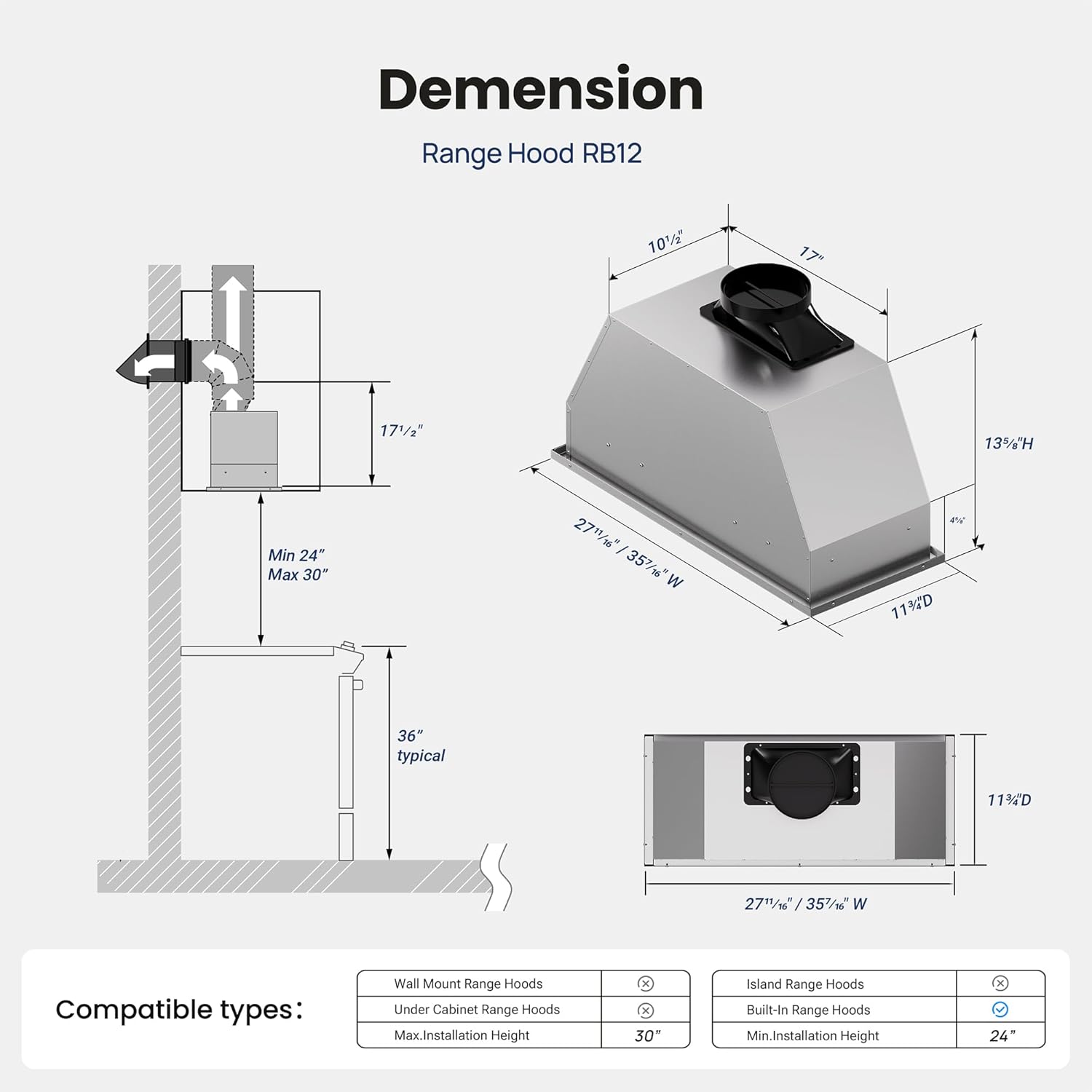 【Hassle-Free Purchase】 All installation hardware and instructions for this range hood insert 30inch are included in the package. We also offer free replacements for accessories like filters and lights whenever needed. Our professional and friendly customer service team is always available, so feel free to reach out with any questions or concerns.