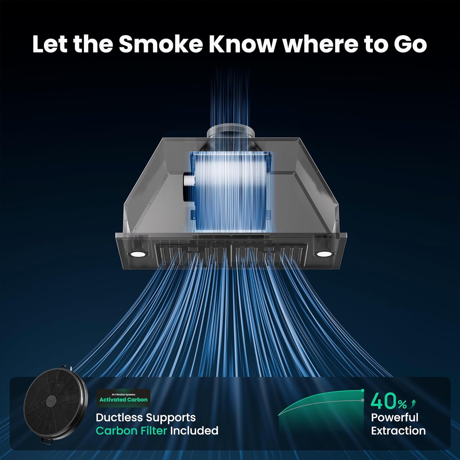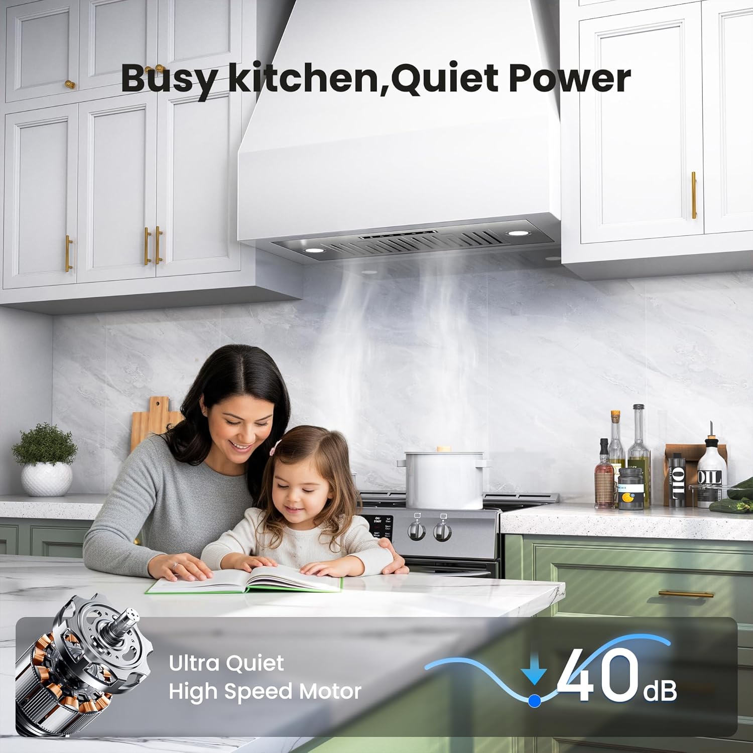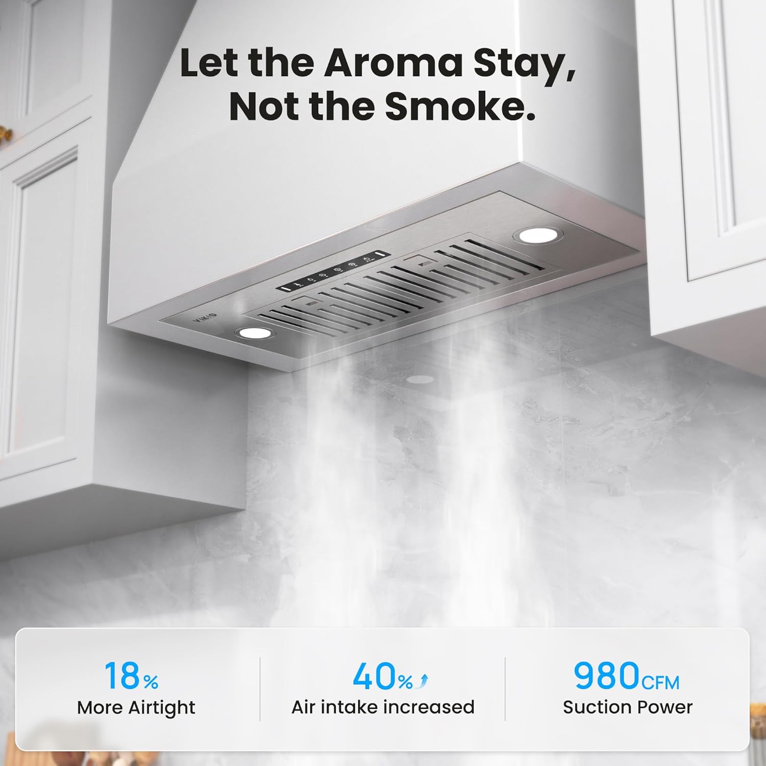 【Trailblazer Dual-Intake Motor】This advanced motor features dual-sided air intake, boosting airflow by 20% compared to single-sided systems. With a powerful 980 CFM capacity, the range hood insert 30 inch efficiently removes smoke and odors, ideal for various cooking styles.