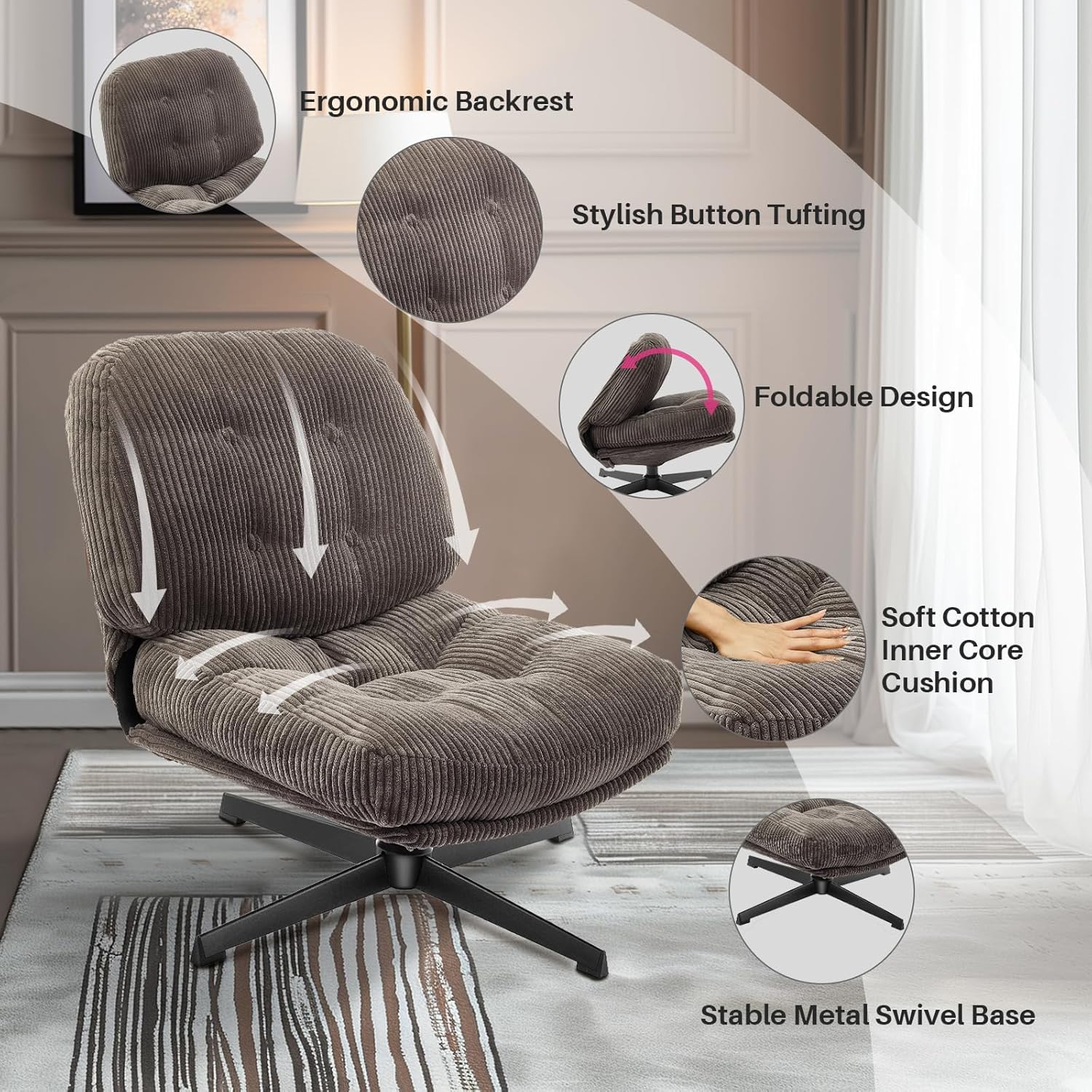 COMFORTABLE LAZY CHAIR: The upholstered swivel chair made of skin-friendly fabric, which is not only soft and delicate to the touch, but also presents a high-class texture visually, which becomes the highlight of your bedroom, living room, dorm room, etc. makes your home full of cozy and warm atmosphere.