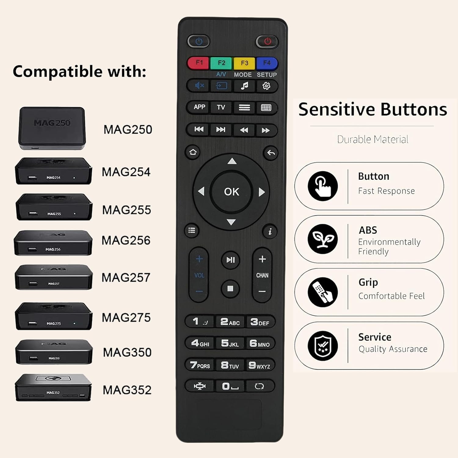 Replacement Remote Control for MAG 254/255 Streaming Media Player Multipurpose Replacement Part Linux System OTT IPTV Set Top Box, Black