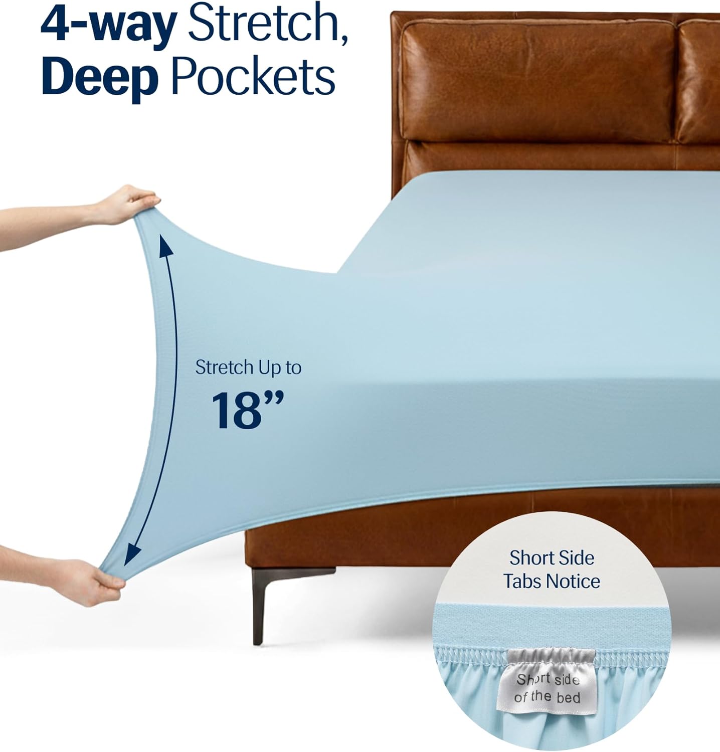 Includes One Queen size (56X76X15 inches) Cooling Fitted Sheet: Ultra breathable Evercool+ sheet set to enhance any bed; Deep pocket fitted sheet for mattresses up to 18 inches thick with helpful ‘long side’ and ‘short side’ tabs for easy install; Extra wide elastic band around edge ensure a secure fit that stays all night