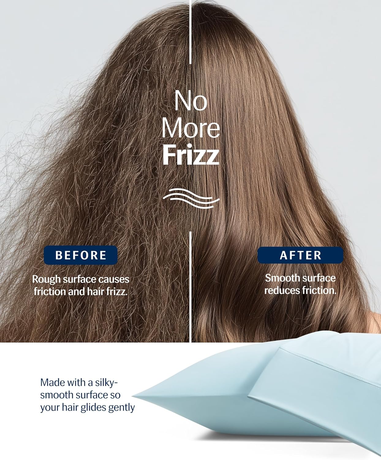 Includes Two Standard size (29×19 inches) Cooling Pillowcases: Better skin and hair pillow case made from Evercool+ fabric; Reduce friction, prevent frizz, and avoid hair damage for curly and wavy hair; Unbelievable comfort with extra-soft fabric that glides across your skin to prevent irritation and crush wrinkles