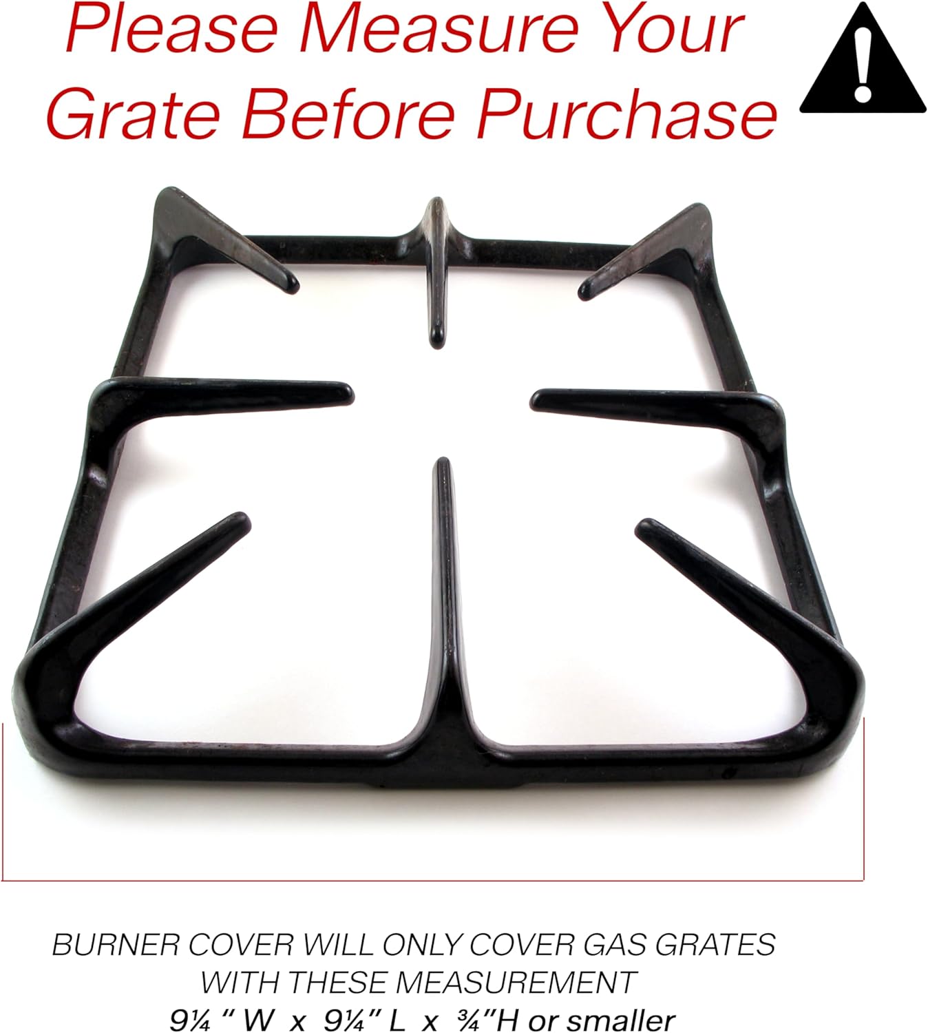 GAS BURNER COVERS | This set was designed to cover standard gas stovetop elements. This will not cover large gas grates. Covers have smooth rim to not scratch your stovetop.