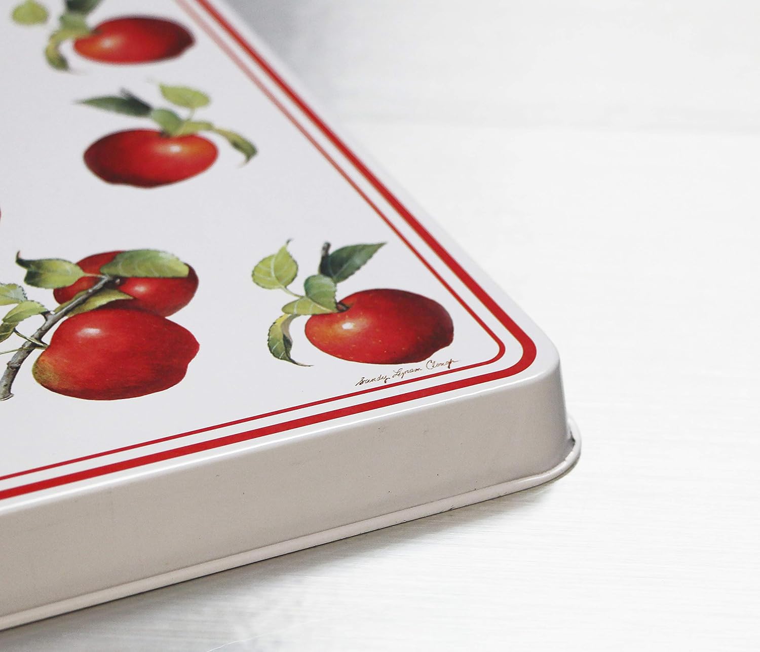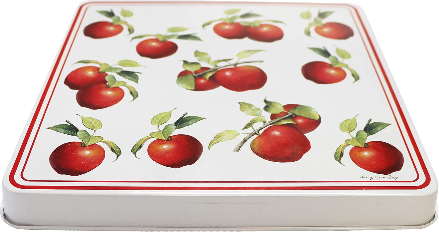 This tin burner cover was designed to cover up your messy gas stove and add a little pop of color. This pattern was designed by Sandy Clough which is called Harvest Apple. This set comes with four covers each 4″ square and 7/8 inches tall. Hand Wash.