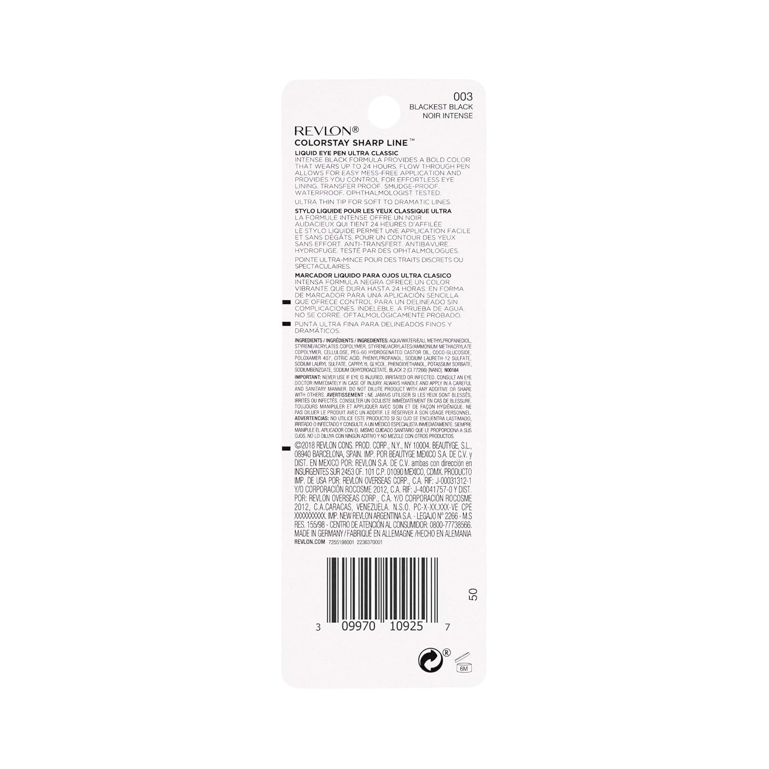 This dramatic liquid eyeliner delivers highly pigmented, ultra smooth, and intense jet black color. It’s also waterproof, transfer-proof, smudge-proof, smear-proof and lasts up to 24 hours. Our 3 unique, flow-through pens make for easy, mess-free lining—no matter your look. Revlon ColorStay Sharp Line™ Liquid Eye Pen has a slim, tapered tip that offers the perfect amount of flexibility to work with the curve of your lash line; perfect for thin or thick lines. Revlon ColorStay Connect the Dots™ Liquid Eye Pen offers a ballpoint shape that allows you to dot and draw along your lashes. Revlon ColorStay Triple Edge™ Liquid Eye Pen has a specially designed angled tip that makes it easy to master a cat eye