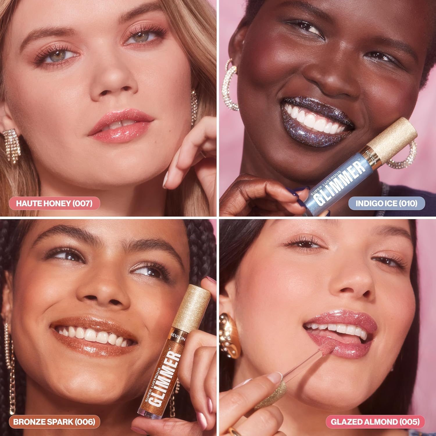 Glimmer. Shimmer. Shine. Revlon Super Lustrous Glimmer Gloss is the first lip gloss made with plant-based glitter and light-refracting pearls for shimmering, multidimensional shine with every swipe. Non-gritty, non-sticky feel. The luxe, lightweight formula glides on smoothly, gives lips a fuller and plumper appearance, plus instantly boosts hydration by up to 39%. Formulated with a Botanical Complex of Agave, Moringa + Cupuacu Butter. Available in 10 glimmering shades.