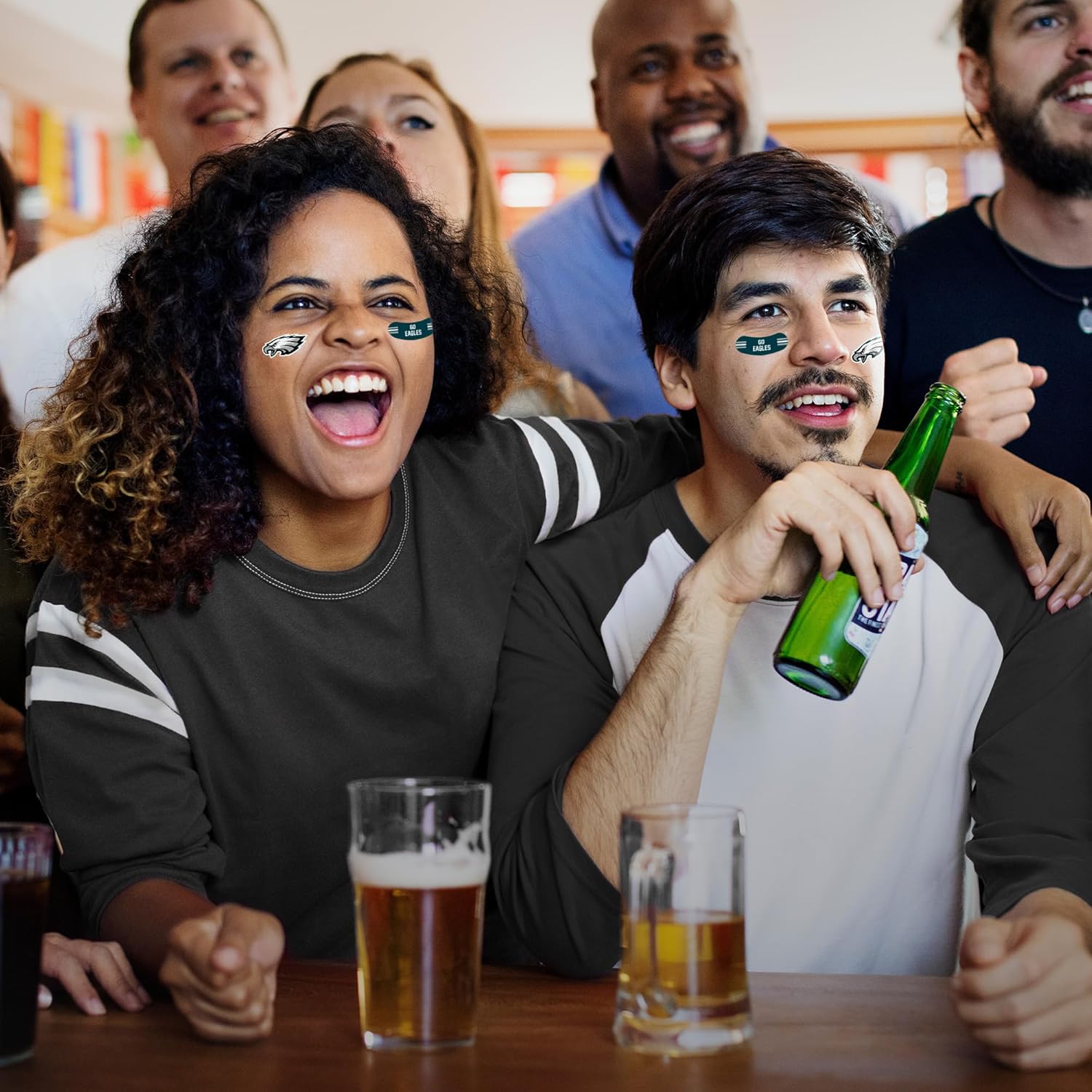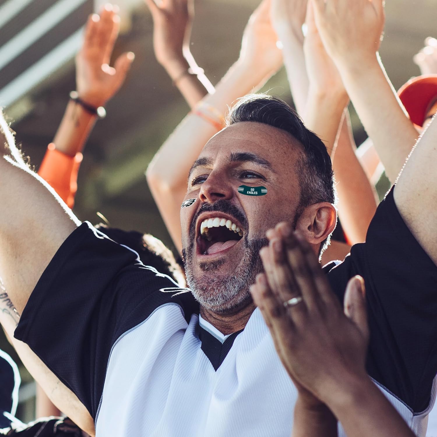 Customers find these temporary tattoos perfect for game day, with the stickers staying on for over 12 hours and being easy to put on and take off. Customers describe them as cute face eye black NFL stickers that are fun to wear. While some customers consider them good value for money, others say they’re not worth the price. The size receives mixed feedback, with several customers noting they are very small, and durability is also mixed, with one customer reporting they held up beautifully over makeup while another mentions they fell off by halftime.