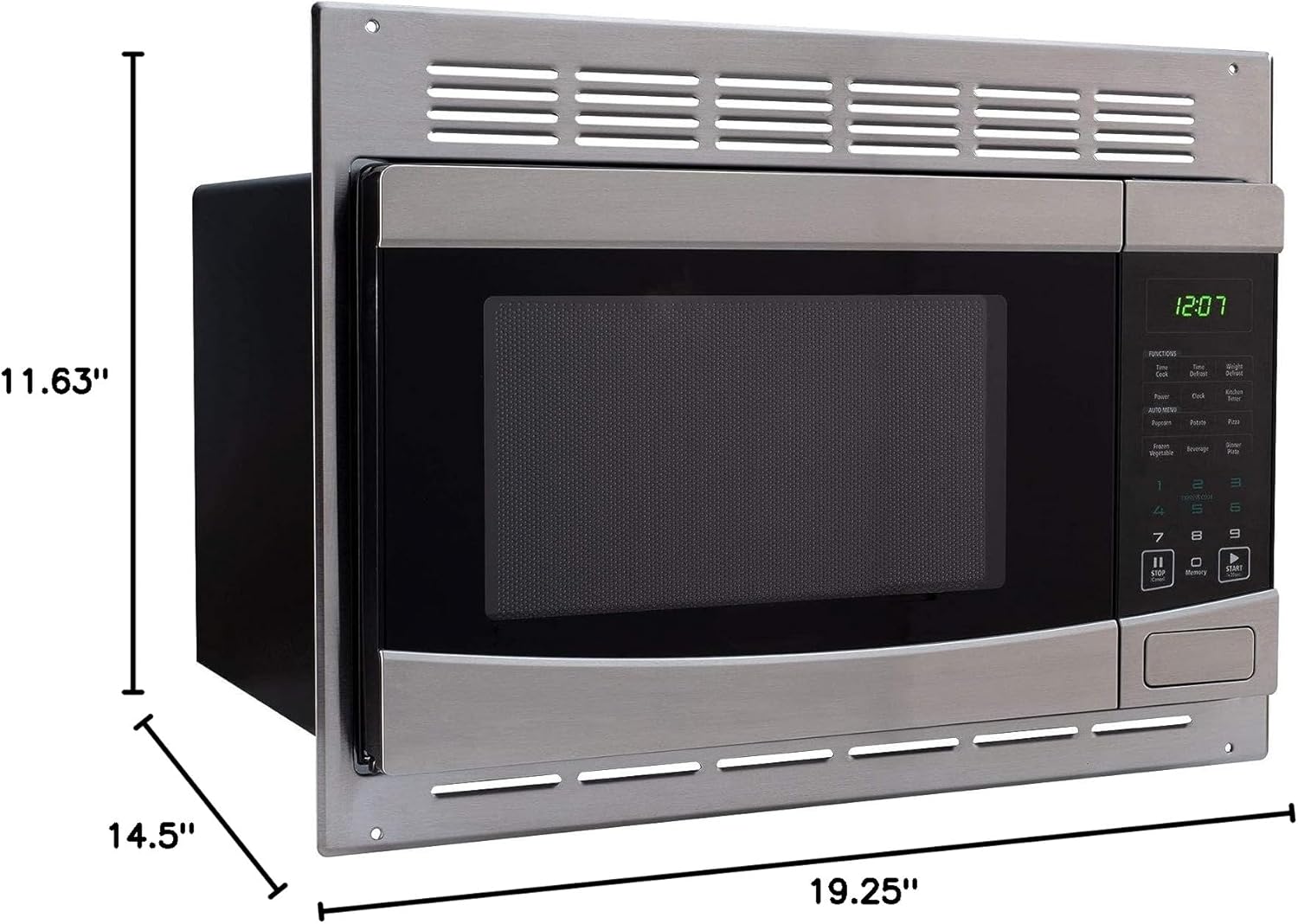 8 Express Cook options (Popcorn, Potato, Pizza, Beverage, Dinner Plate, Frozen Vegetable) Instant Start (30 seconds per touch) 10 Power Levels Time Cook 00:01 to 99:99 Speedy Cook Kitchen Timer Weight and Time Defrost Options Child Lock Setting Specifications: Unit Dimensions: Width: 19.0 inches Height: 11.375 inches Depth: 14.8 inches Cutout Dimensions: Width: 20.125 inches Height: 13.25 inches Depth: 13.5 inches