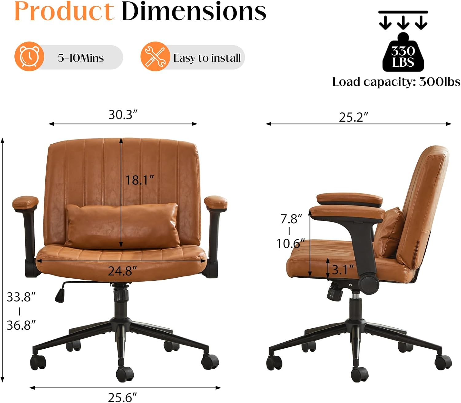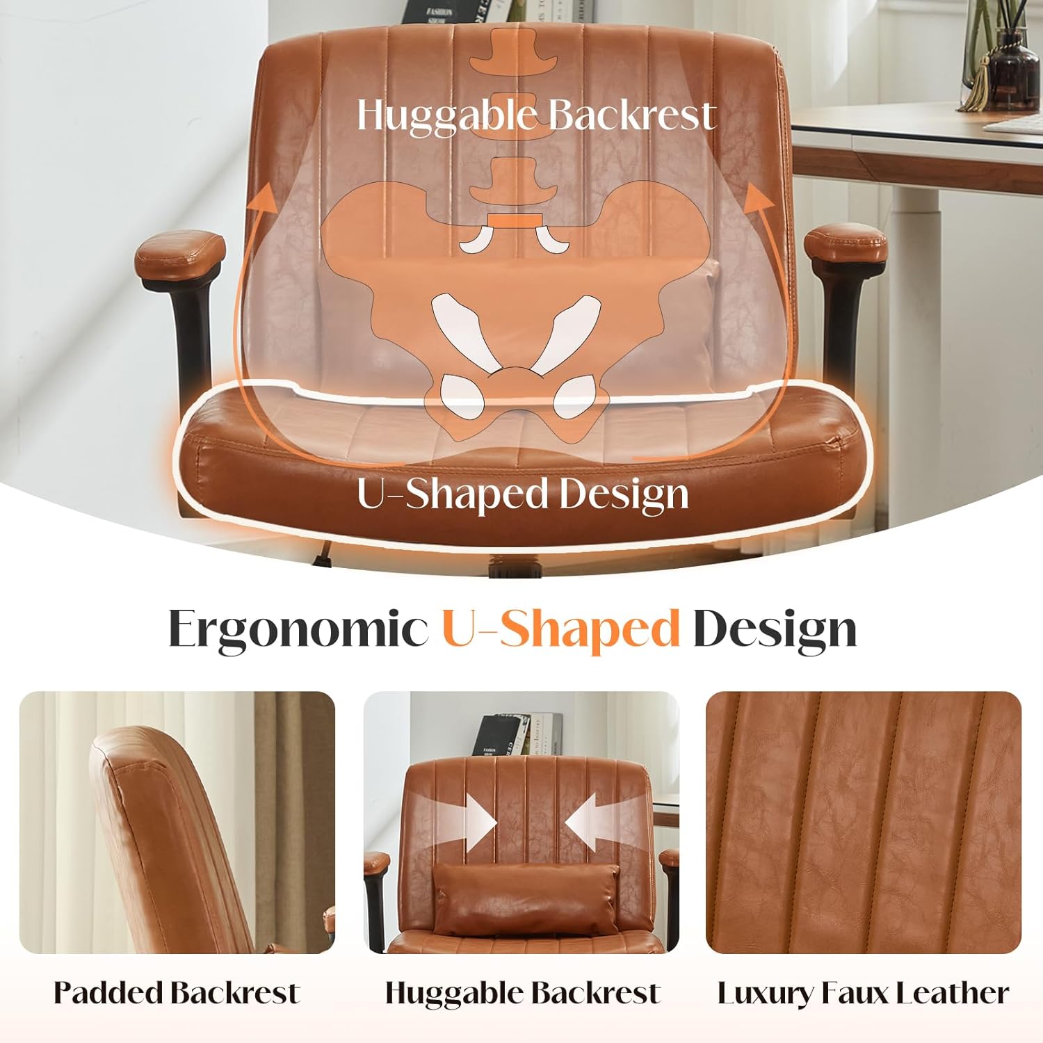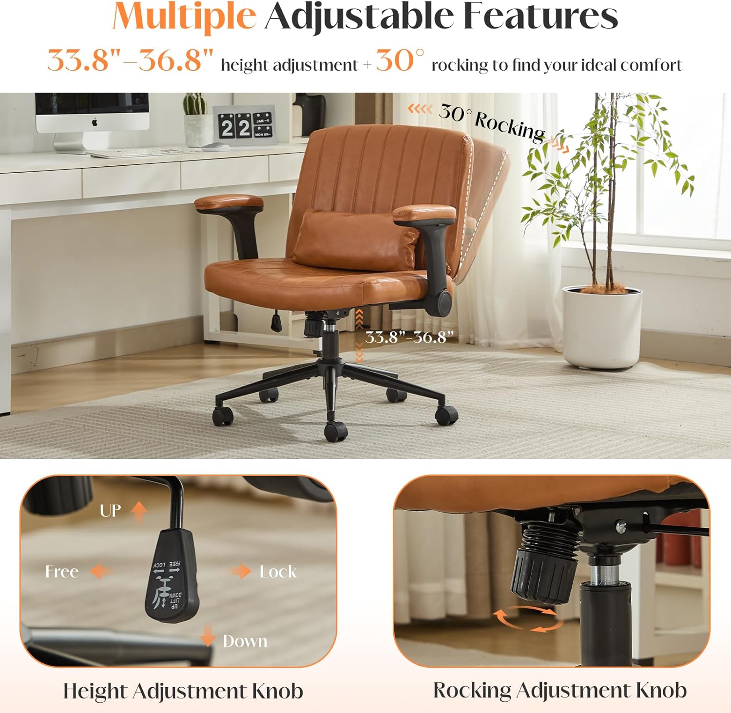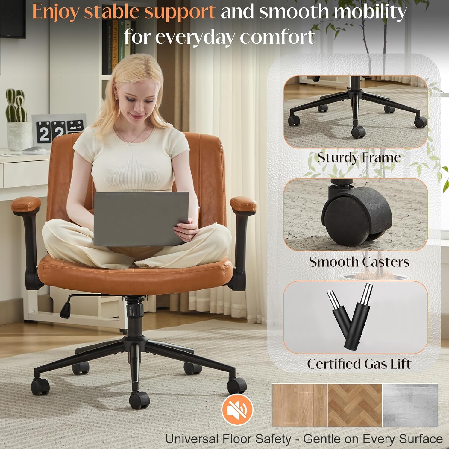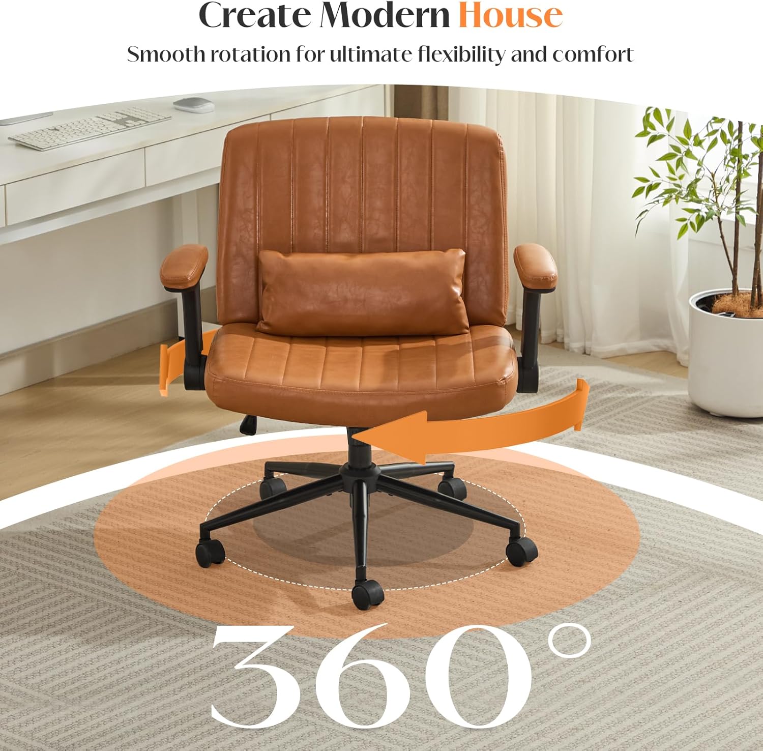 SAMERY Criss Cross Chair with Wheels Adjustable Flip-Up Arms, Wide Cross Legged Office Desk Vanity Chair Height Adjustable Swivel for Home Office Vanity Computer Task (Brown, with Armrests)