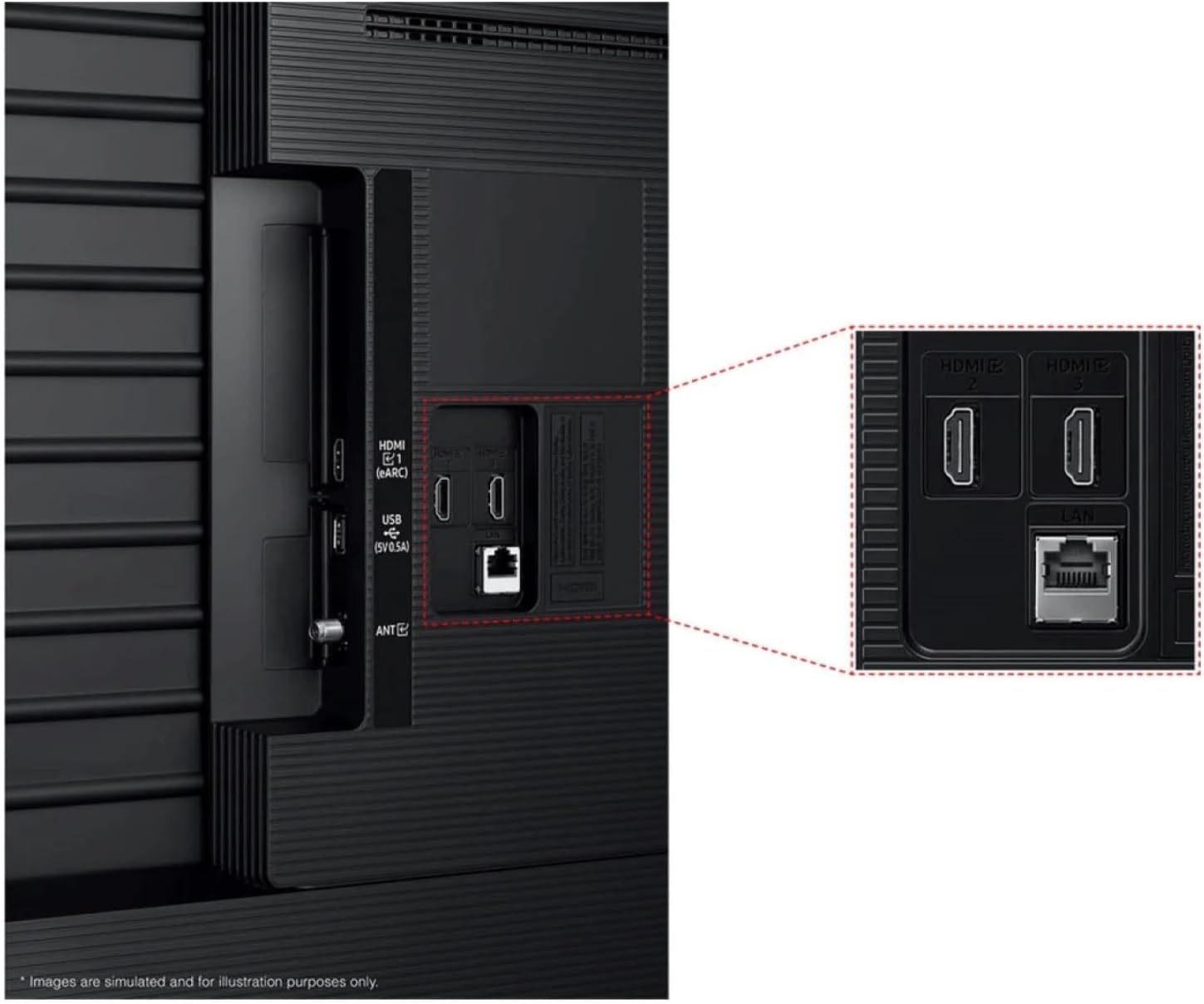Full Connectivity: Wi‑Fi 5 (802.11ac), Bluetooth 5.3, 3× HDMI (with 4K@60 Hz and eARC/ARC), 1× USB-A, Ethernet (LAN), RF in, Anynet+ (HDMI-CEC). Supports SmartThings, Matter, AirPlay 2, and Tap View.