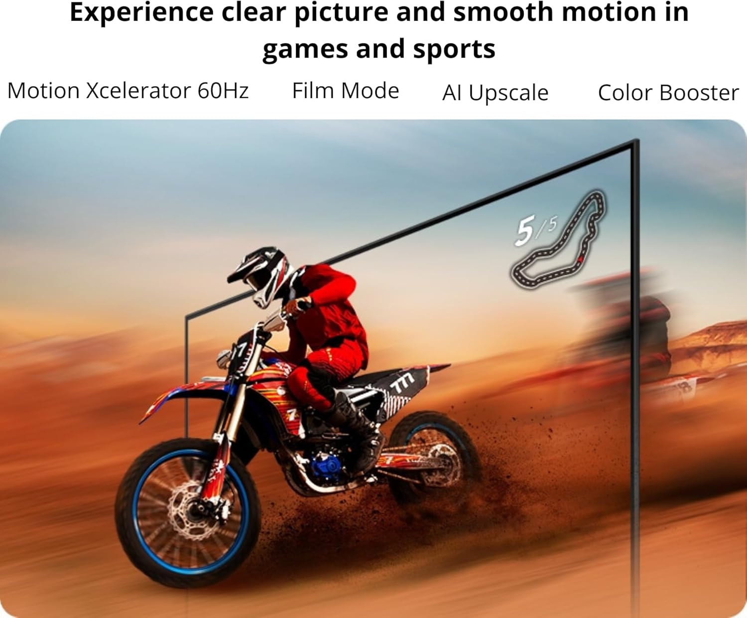 4K UHD Display / 60 Hz with edge-lit VA LED panel; native 60 Hz refresh rate supported by Motion Xcelerator for smoother action scenes.