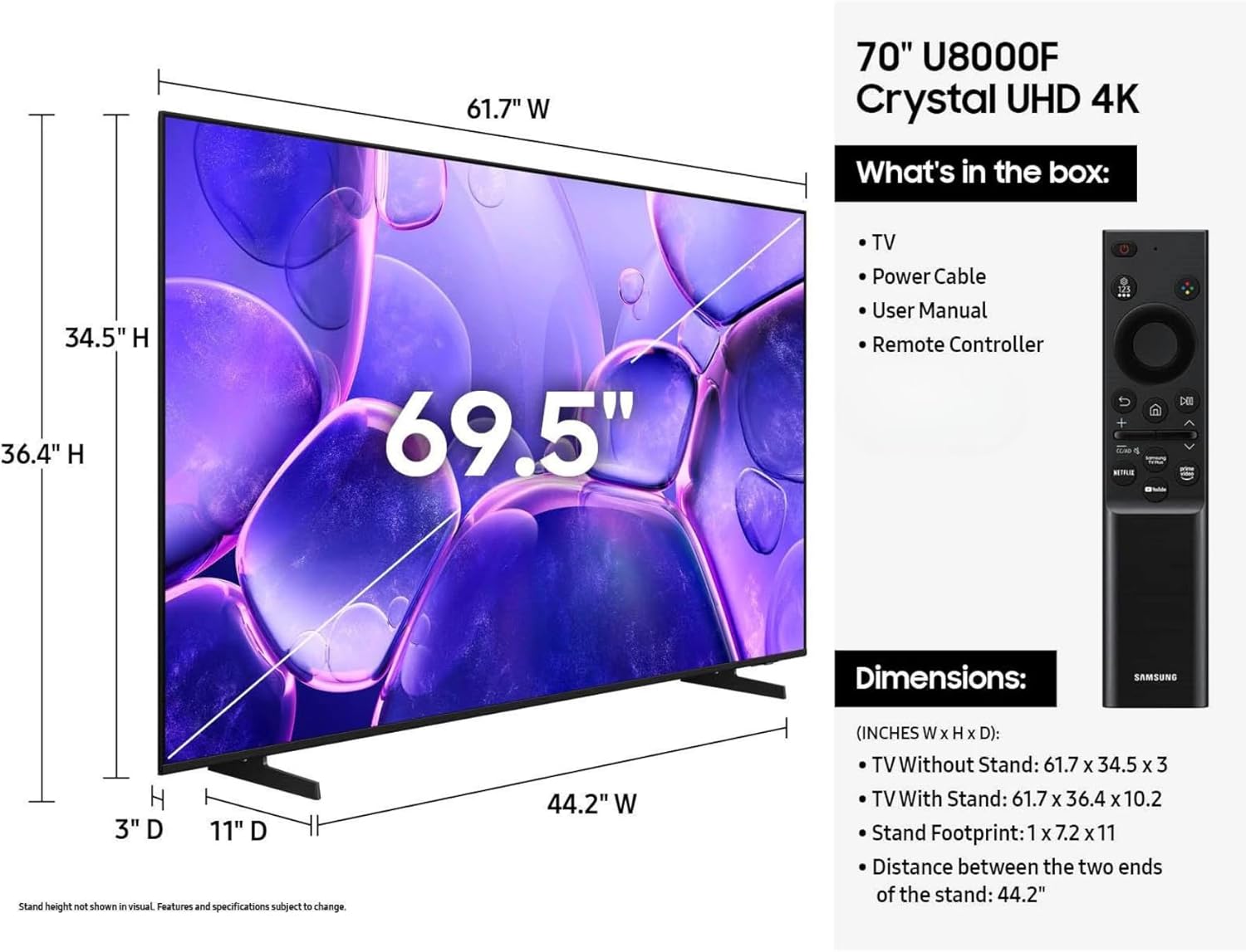 Experience vivid picture quality and smart features in a compact size with the Samsung U8000 Crystal UHD 4K Smart TV. Powered by the Crystal Processor 4K, this TV enhances every scene with incredible clarity and lifelike color. TheHDR10+ support and PurColor technology bring movies, sports, and games to life, while Motion Xcelerator keeps fast-paced content smooth and clear.