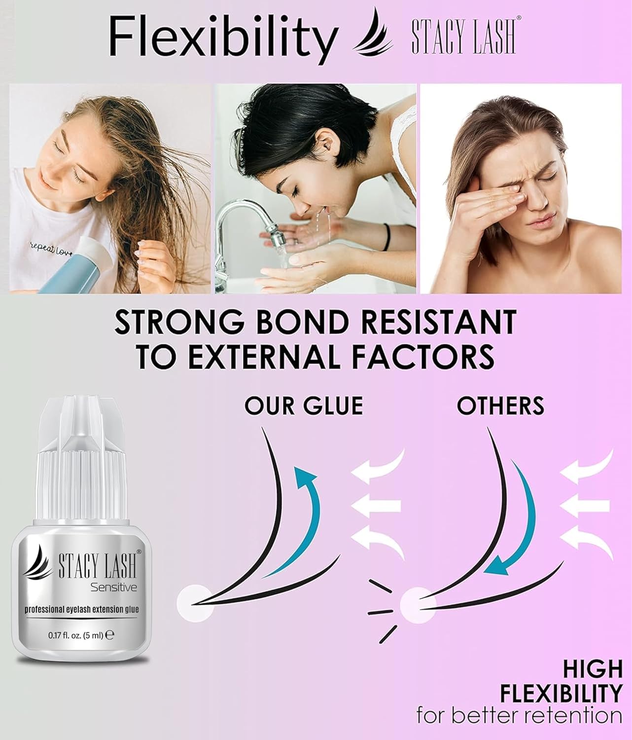 Reliable retention – it lasts up to 4-5 weeks, allows the best bond for a sensitive eyes adhesive. Stacy Lash Sensitive will help you clients to enjoy eyelash extensions without allergy.