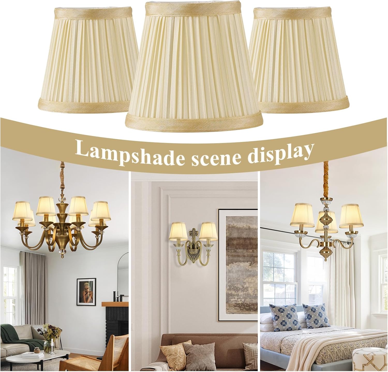 Reliable Material:small chandelier light covers are beige silk-type fabric and premium off-white styrene lining double layer materials handmade,Quality lining fabric has good light transmission, in addition, anti rust clips provide a strong hardcover structure, can serve you for a long time.