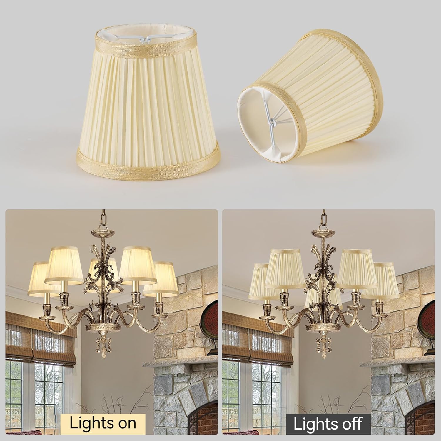 Easy to Install: The top of this beige lamp shade is fitted with a Clip-On fitter, designed to clip directly onto Mini chandelier lamp shades bent tip style bulbs not recommended,spiral bulbs, stick bulbs.