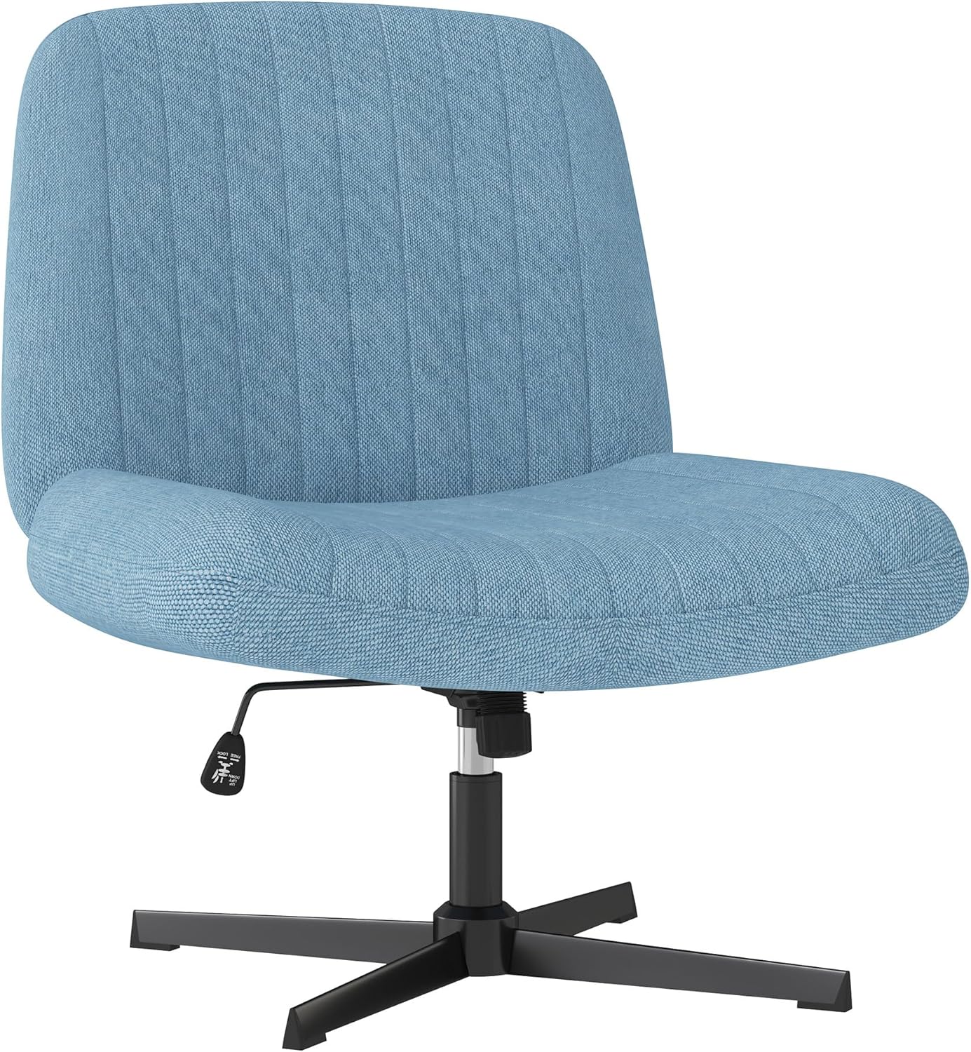 Shintenchi Criss Cross Chair,Cross Legged Office Seat No Wheels Armless Swivel Vanity Chair,Height Adjustable Wide Computer Task Seating for Home Office,Blue