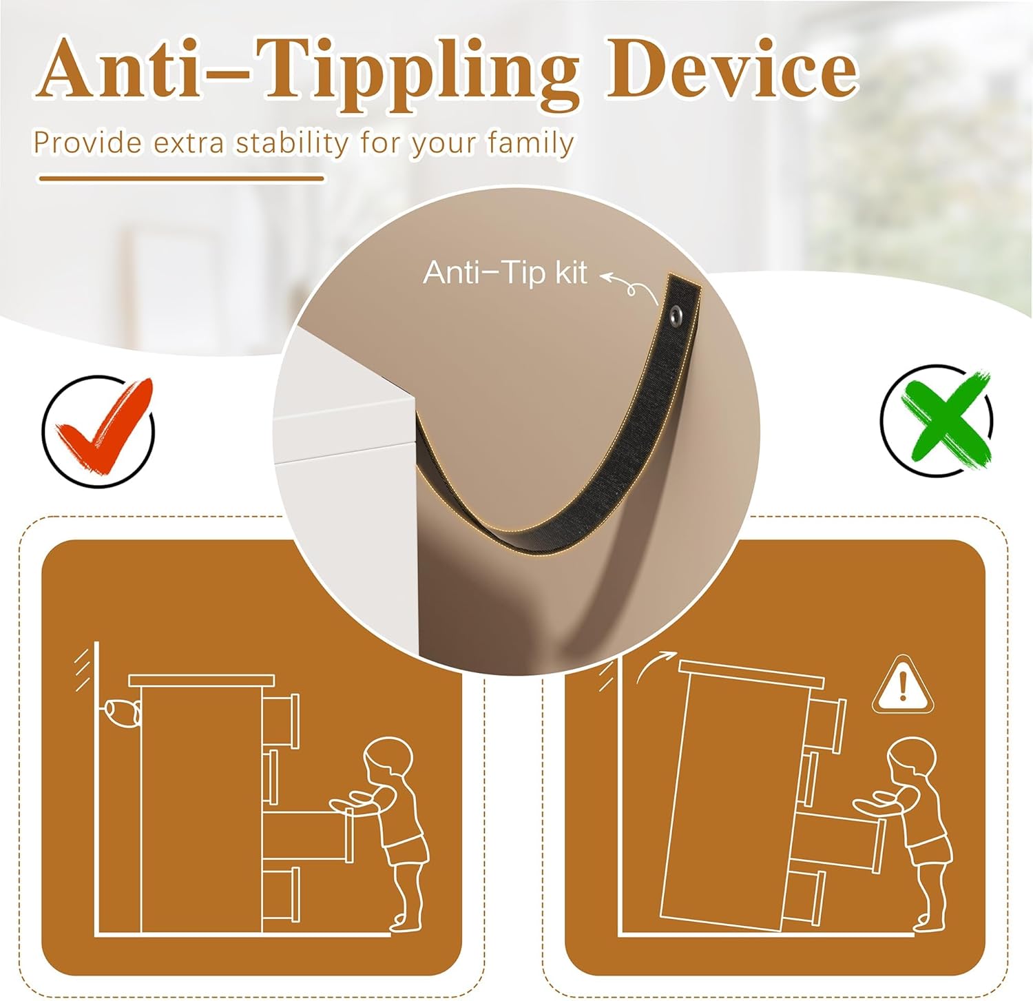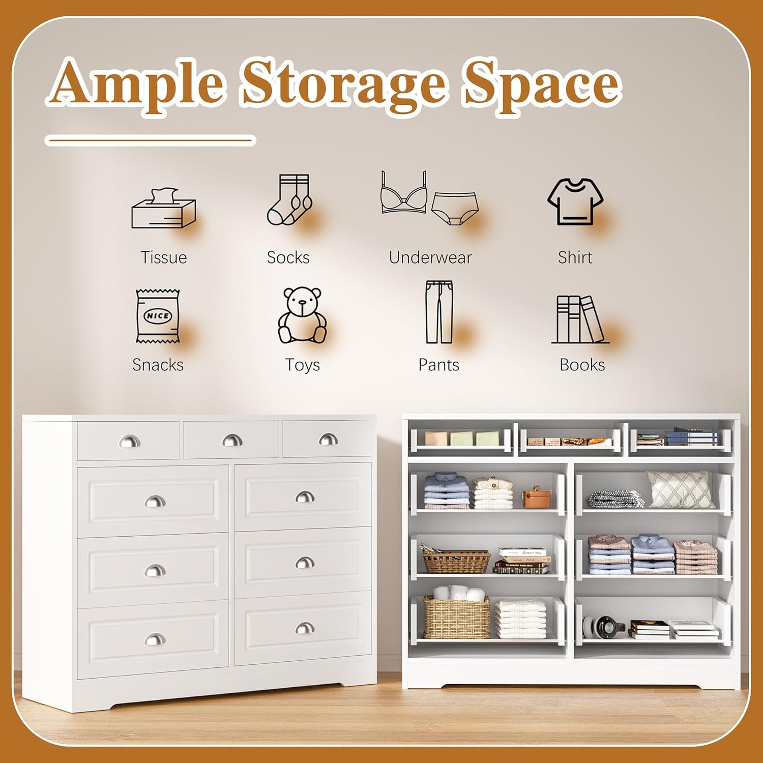 More Stable Structure: Unlike the cheap made fabric dresser, our wooden dresser is much more sturdy and not easy to be deformed. Anti-tippling device is quipped on the back for your safety