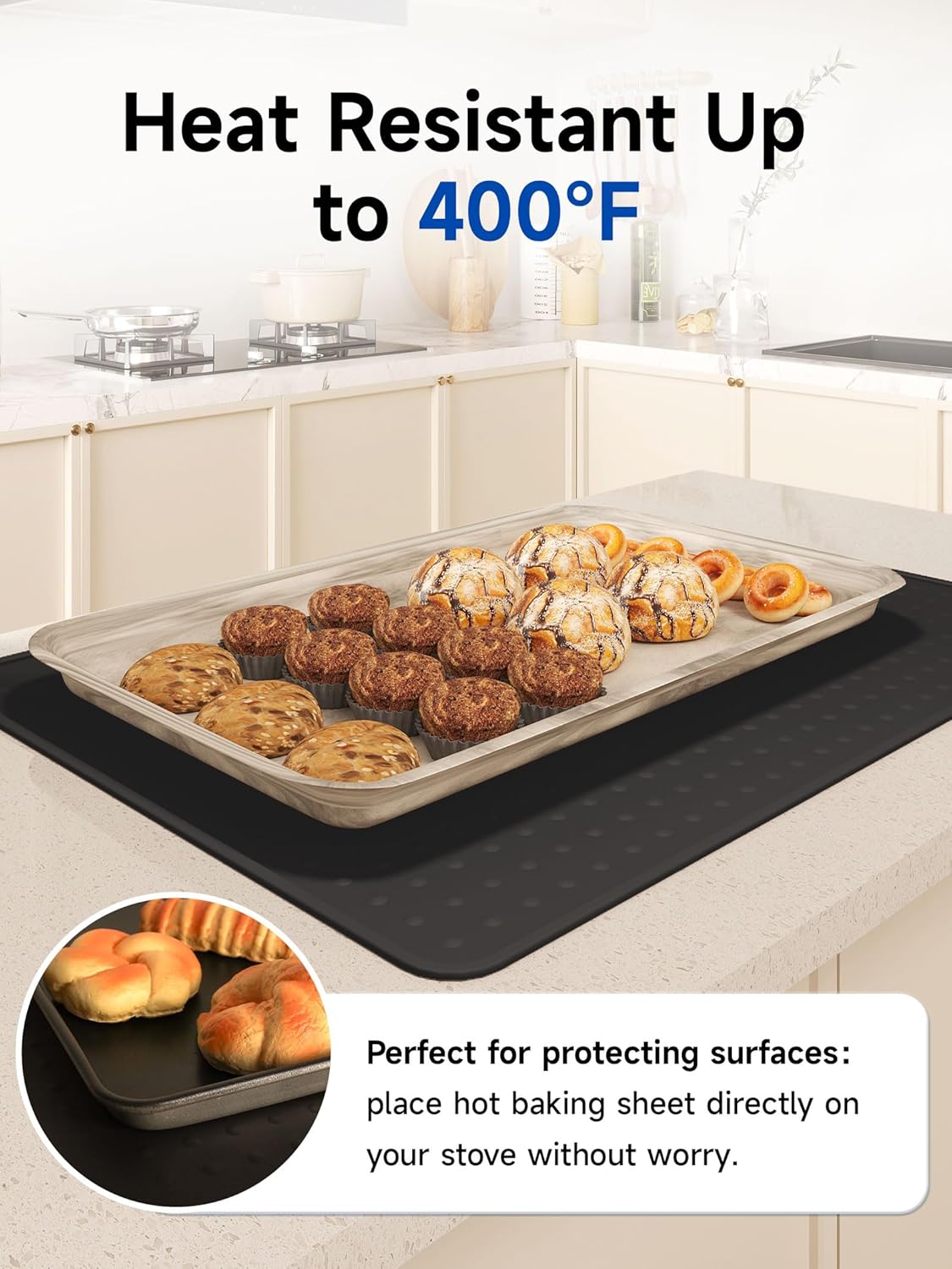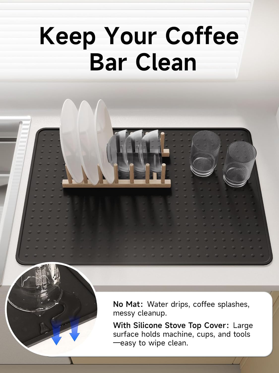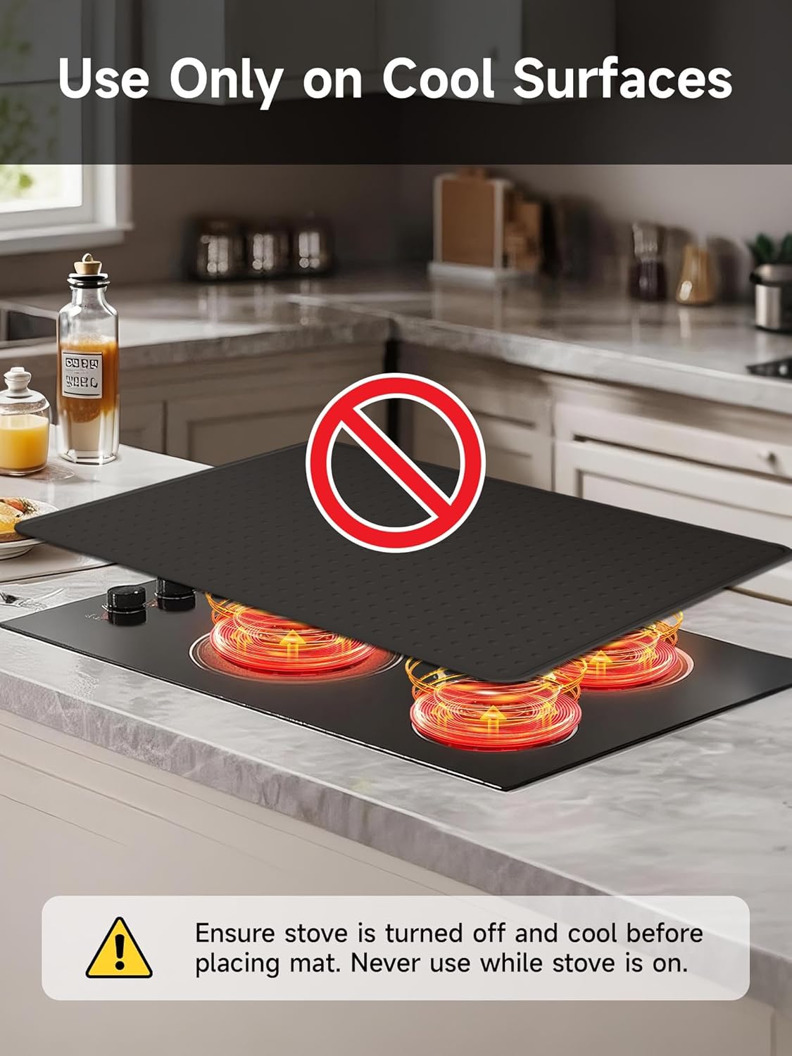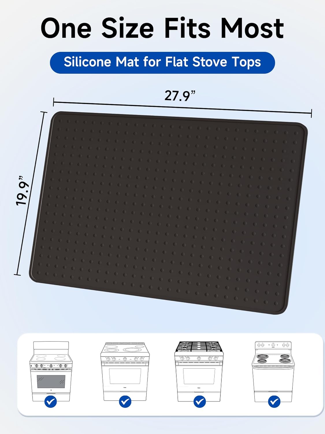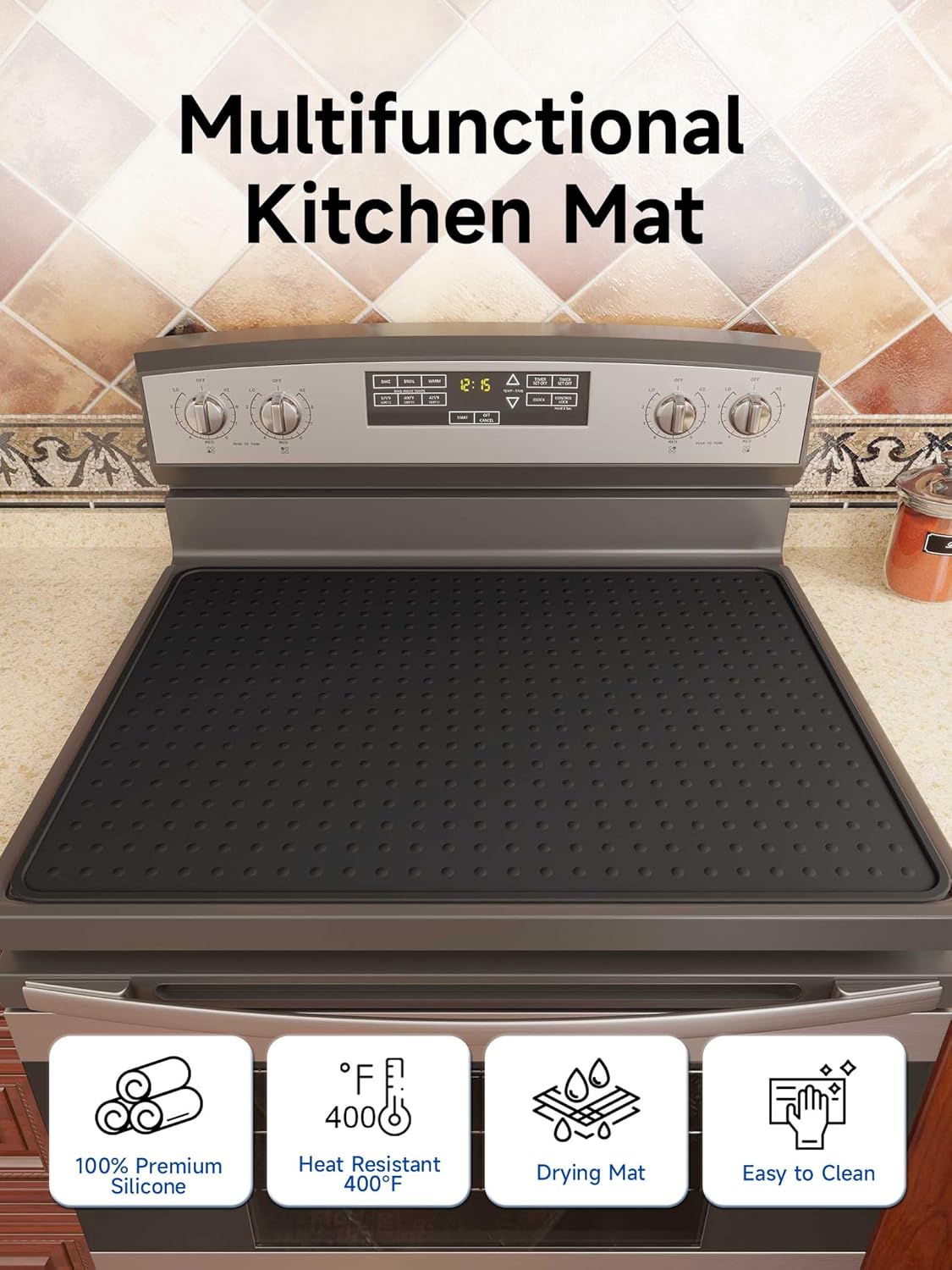 Silicone Stove Top Cover for Electric Stove, Glass Stove Top Protector, Stovetop Cover Mat for Cooktop, Flat Range Cover, Oven Top Protector, Coffee Bar Mat, 28 x 20 in, Black
