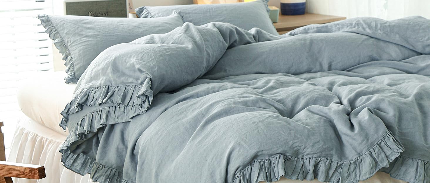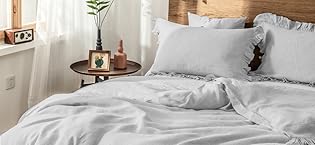 Simple&Opulence 100% Linen Duvet Cover Set, 3 PCS Natural French Flax Ruffle Duvet Cover Queen Size, Breathable Comfy Linen Bedding Comforter Cover with 2 Pillowcases (Natural Linen, 88″ X 92″)