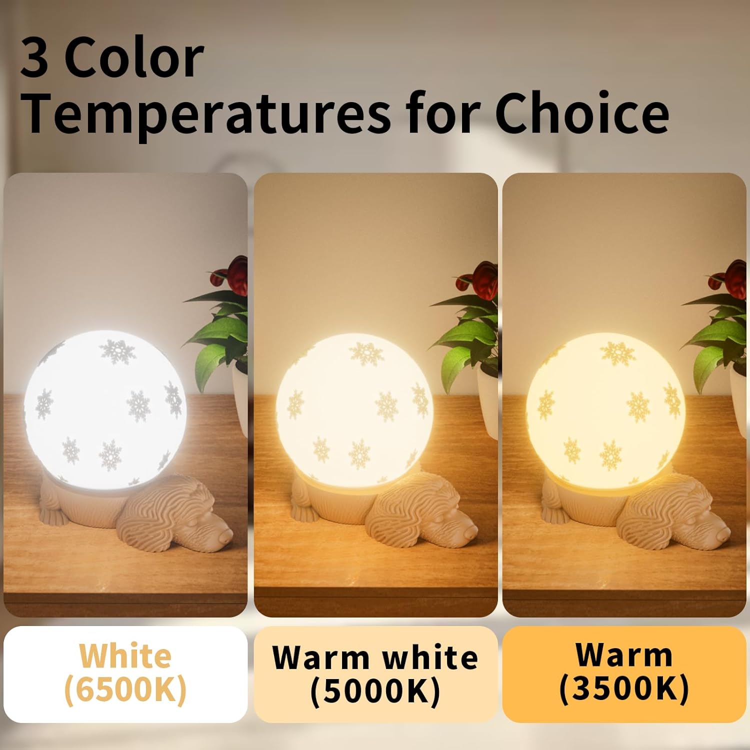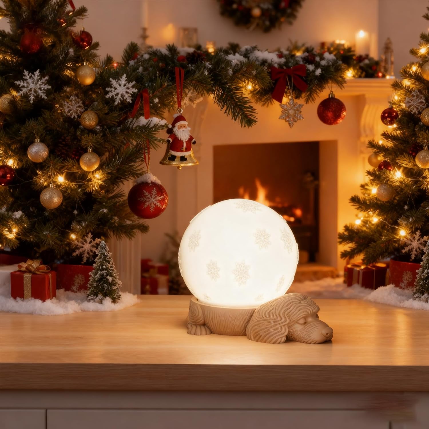 PUPPY LAMP with SNOWFLAKE RELIEF SHADE: Featuring a charming puppy base and elegantly snowflake relief lampshade design, this delightful table lamp adds a playful yet sophisticated touch to any room. Perfect as a bedside lamp for nightstands or a decorative accent for living rooms and bedrooms, it creates a warm ambiance for everyday use or special occasions like Christmas, birthdays and parties