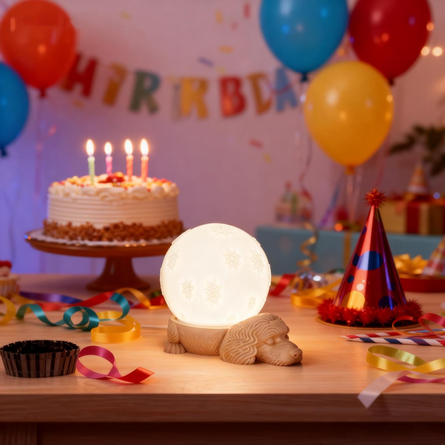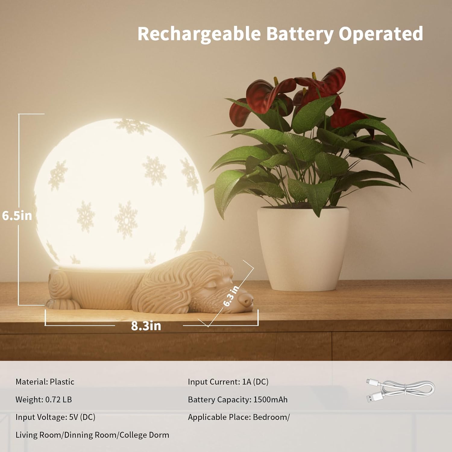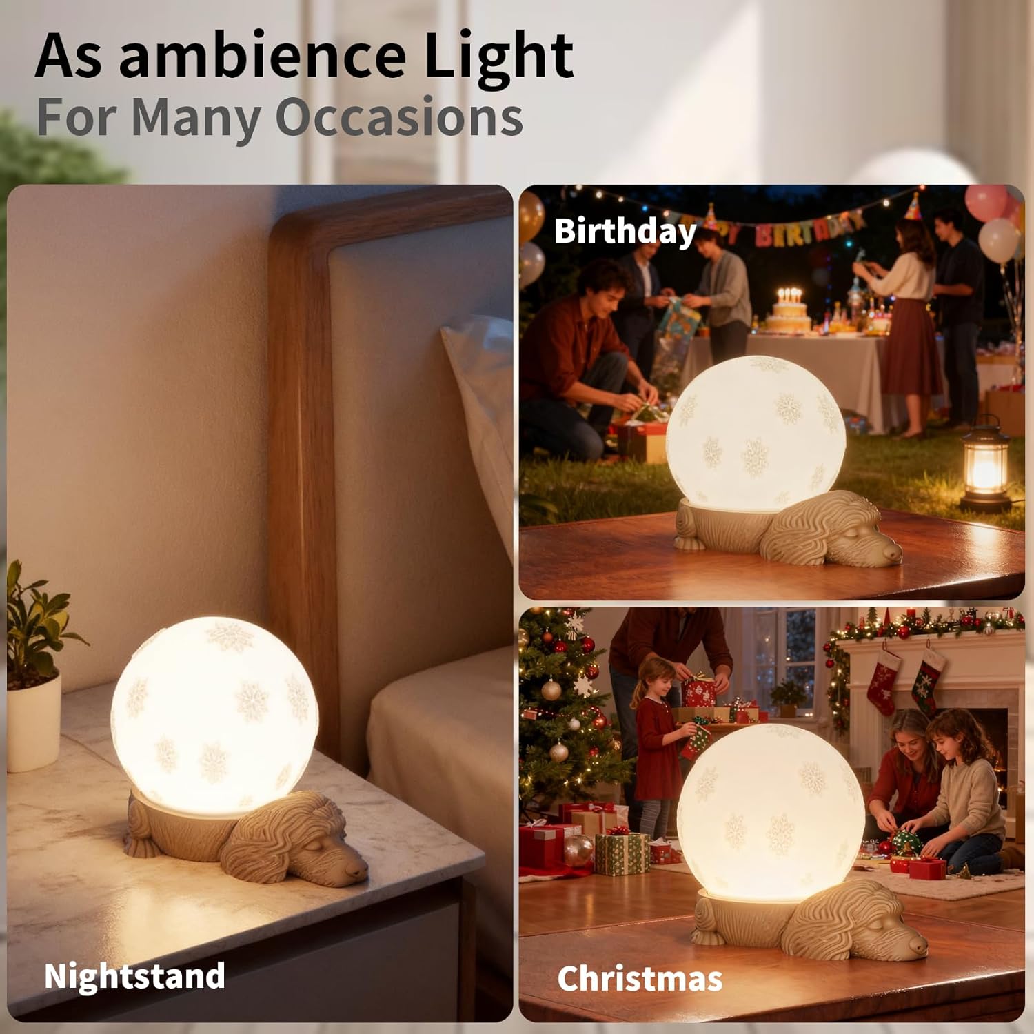 VERSATILE AMBIENCE LAMP FOR ANY SPACE: Ideal as a nightstand companion, living room accent, or dining room centerpiece, this dog-themed ambience lamp blends style and portability. Its cord-free design allows easy moving, making it a perfect gift or decorative piece for bedrooms and beyond